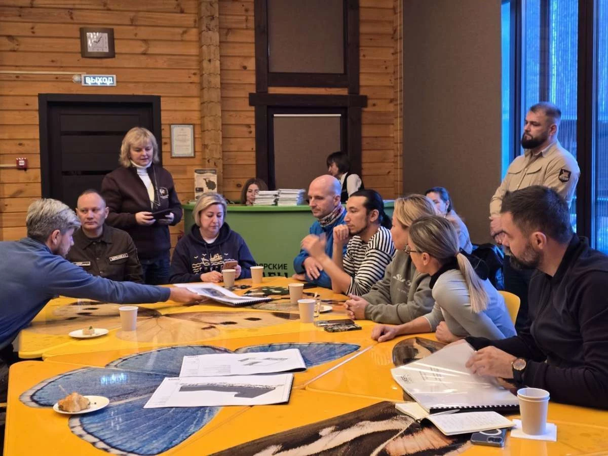 Вячеслав Щербаков представил презентацию о развитии территории и планах по благоустройству инфраструктуры, подчеркнув готовность парка к сотрудничеству с бизнесом при соблюдении природоохранных требований.