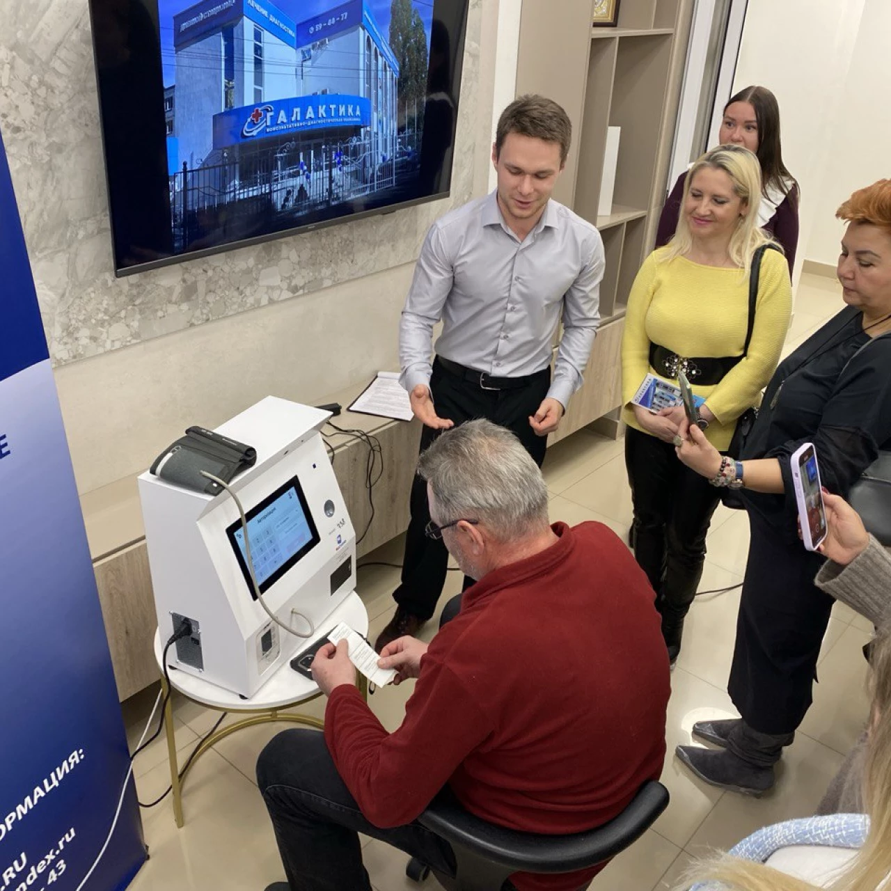 Началось мероприятие с экскурсии по новой поликлинике «Галактика» и презентации услуг компании «АВТОМЕД» по дистанционному предрейсовому осмотру водителей с помощью современного оборудования российского производства, а также контролю технического состояния транспорта.