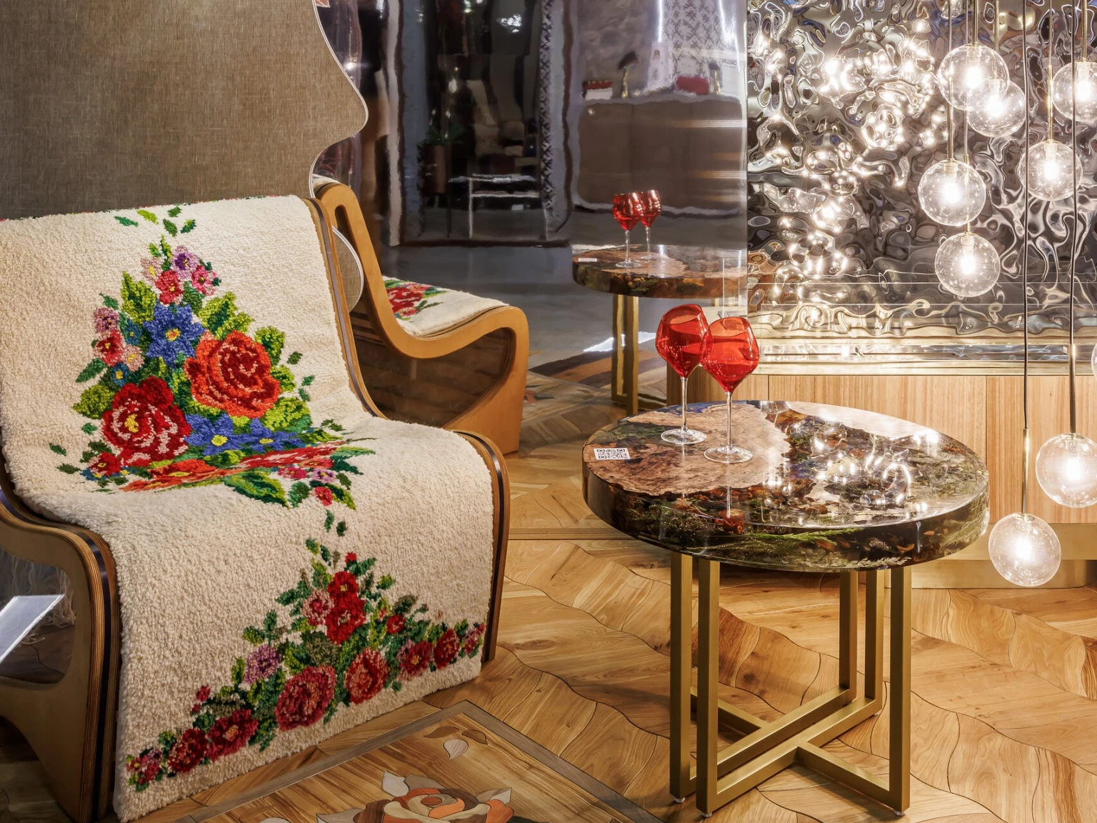 Концепция авторского проекта сформирована на основе образов термальных источников Тюмени и ярких орнаментов сибирских ковров. Эти смыслы легли в основу авторского предмета — кресла с ручной ковровой обивкой, которые стали центральным объектом капсулы и ее визуальной визитной карточкой. Проект получил высокие оценки профессионального сообщества не только за выразительность формы и визуальное решение, но и за эргономику — качество, которое не всегда характерно для дизайнерской мебели.