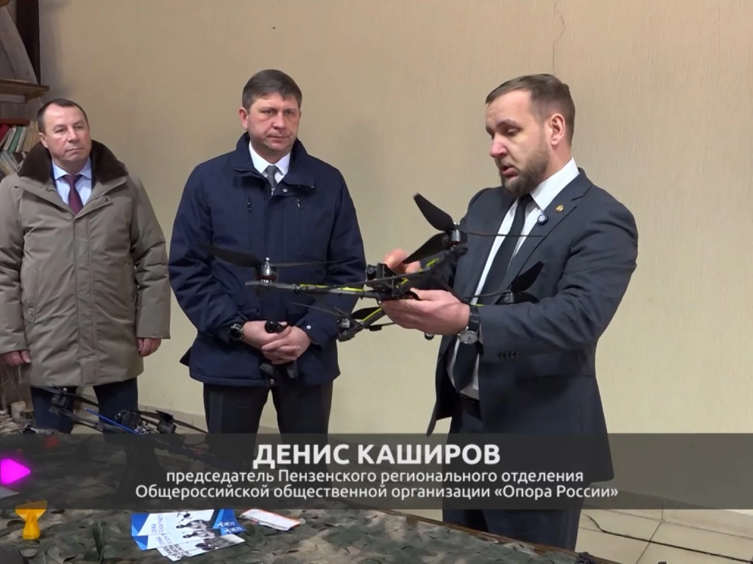 Председатель Пензенской «ОПОРЫ РОССИИ» Денис Каширов продемонстрировал заместителю полномочного представителя Президента РФ в Приволжском федеральном округе Александру Тихонову комплектующие для беспилотных летающих аппаратов, произведенные пензенскими предприятиями.
