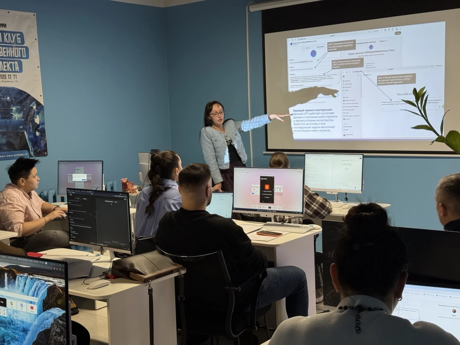 Образовательная программа включает семь основных занятий и дополнительные практические блоки, посвященные созданию чат-ботов в Telegram и разработке карточек для маркетплейсов. Занятия проходят в онлайн и офлайн форматах небольшими группами, что позволяет уделять внимание каждому участнику и разбирать конкретные запросы предпринимателей: автоматизацию рутинных процессов, работу с документами, текстами, аналитикой, клиентскими коммуникациями и внутренними бизнес-процессами.