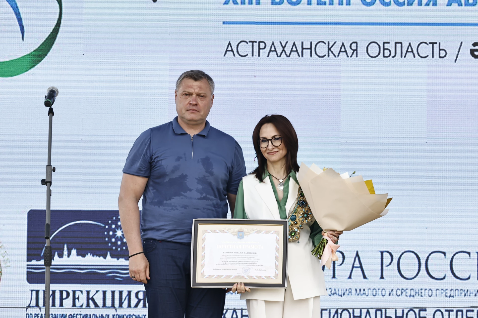 Мероприятие состоялось недалеко от села Три Протока Астраханской области. Здесь развернули этногородок с фуд-кортом и народными забавами. На торжественном открытии Сабантуя глава Игорь Бабушкин вручил Почетную грамоту Губернатора Председателю Астраханской «ОПОРЫ РОССИИ» Наталье Батаевой за успехи, достигнутые в многолетней плодотворной профессиональной и общественной деятельности, и большой вклад в сохранение и развитие национальной культуры.