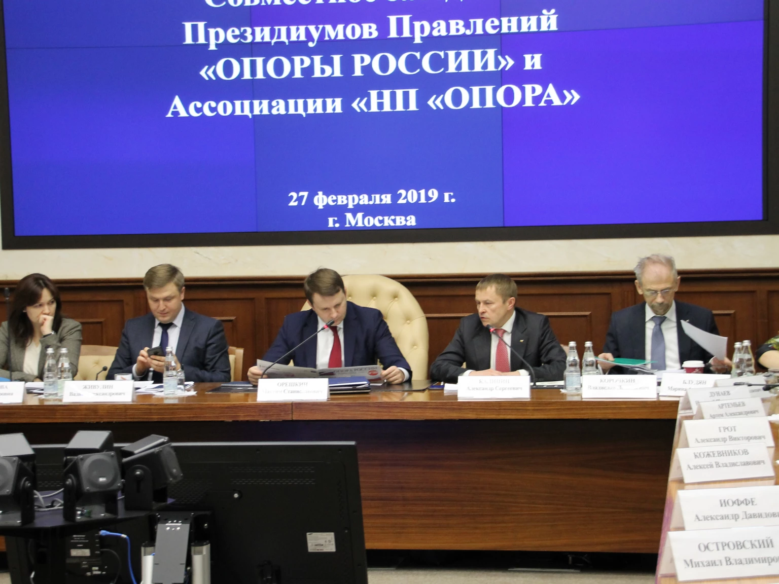 На площадке Министерства экономического развития РФ 27 февраля состоялось совместное заседание Президиумов Правлений «ОПОРЫ РОССИИ» и Ассоциации «НП «ОПОРА» с участием Министра экономического развития РФ Максима Орешкина.