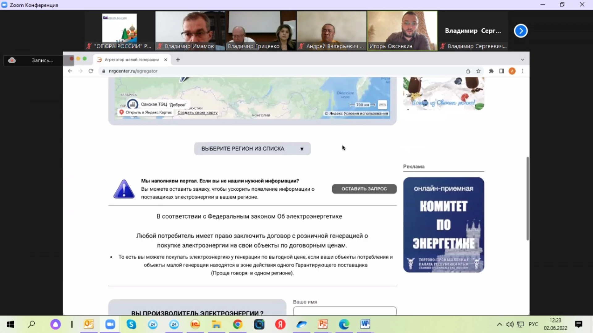 Тема безучетного потребления электрической энергии на сегодняшний день является одной из актуальных. Об этом свидетельствует ежегодное увеличение роста обращений в антимонопольный орган. Именно ее поднял на заседании Василий Алехин, генеральный директор ООО СПМК «Липецкая». «Нужно создать рабочую группу и совместно рассмотреть инициативу изменений в Постановление Правительства РФ от 04.05.2012 N 442 "О функционировании розничных рынков электрической энергии, полном и (или) частичном ограничении режима потребления электрической энергии" (вместе с "Основными положениями функционирования розничных рынков электрической энергии", "Правилами полного и (или) частичного ограничения режима потребления электрической энергии"), а также проработать вопрос о возможности оплачивать "фактическое потребление" безучетного потребления электроэнергии на основании показаний приборов учета электроэнергии и обсудить защиту интересов подрядчиков при проведении закупок по закону № 223-ФЗ», — предложил Василий Алехин.