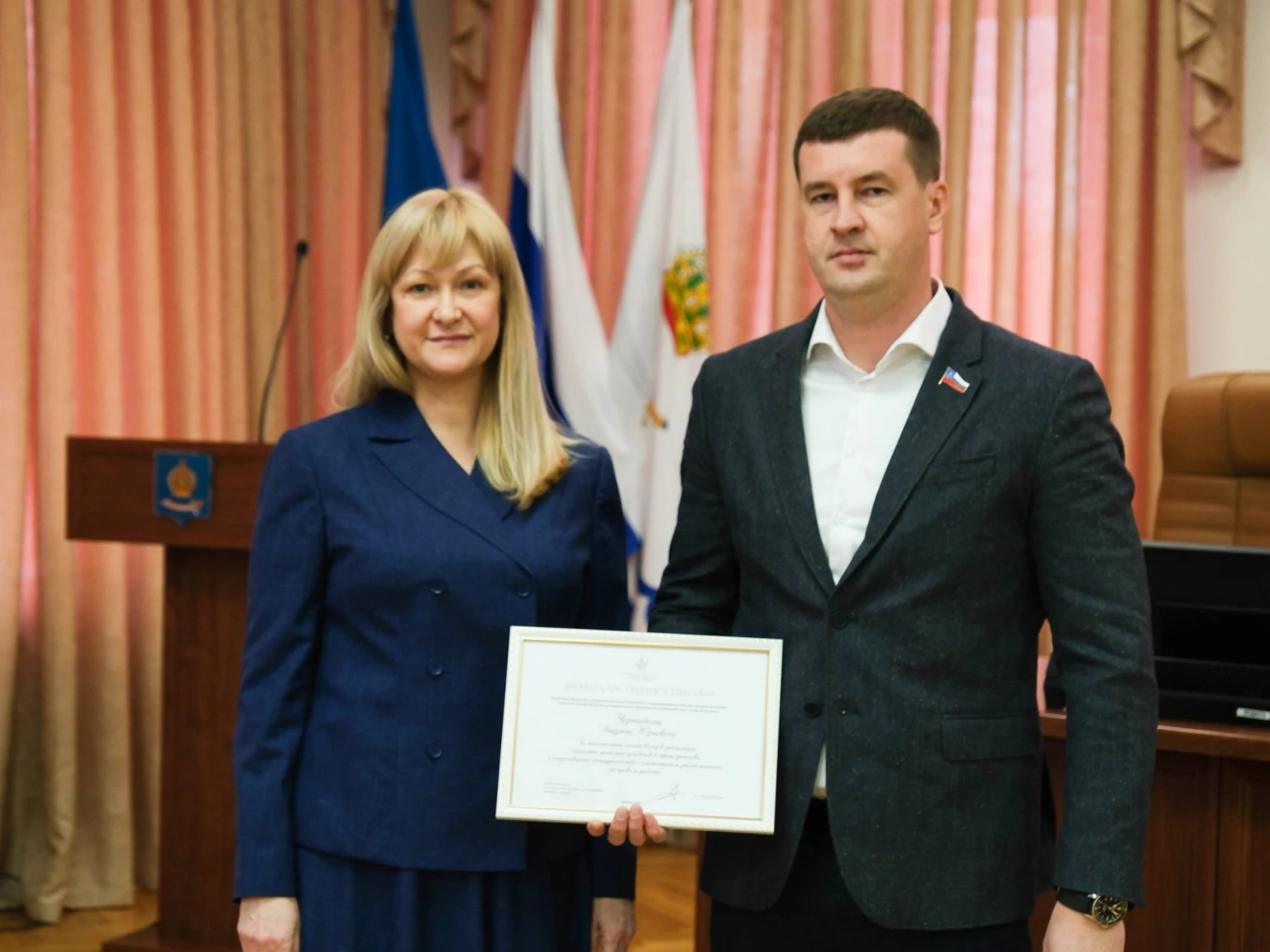 За значительный вклад в реализацию социально значимых проектов в сфере детства и плодотворное сотрудничество с институтом уполномоченных по правам ребенка член Астраханской «ОПОРЫ РОССИИ», депутат Городской Думы МО «Городской округ город Астрахань» Андрей Черничкин получил Благодарственное письмо Уполномоченного при Президенте РФ по правам ребенка Марии Львовой‑Беловой. Награду предпринимателю передала Уполномоченный по правам ребенка в Астраханской области Анна Фадеева.