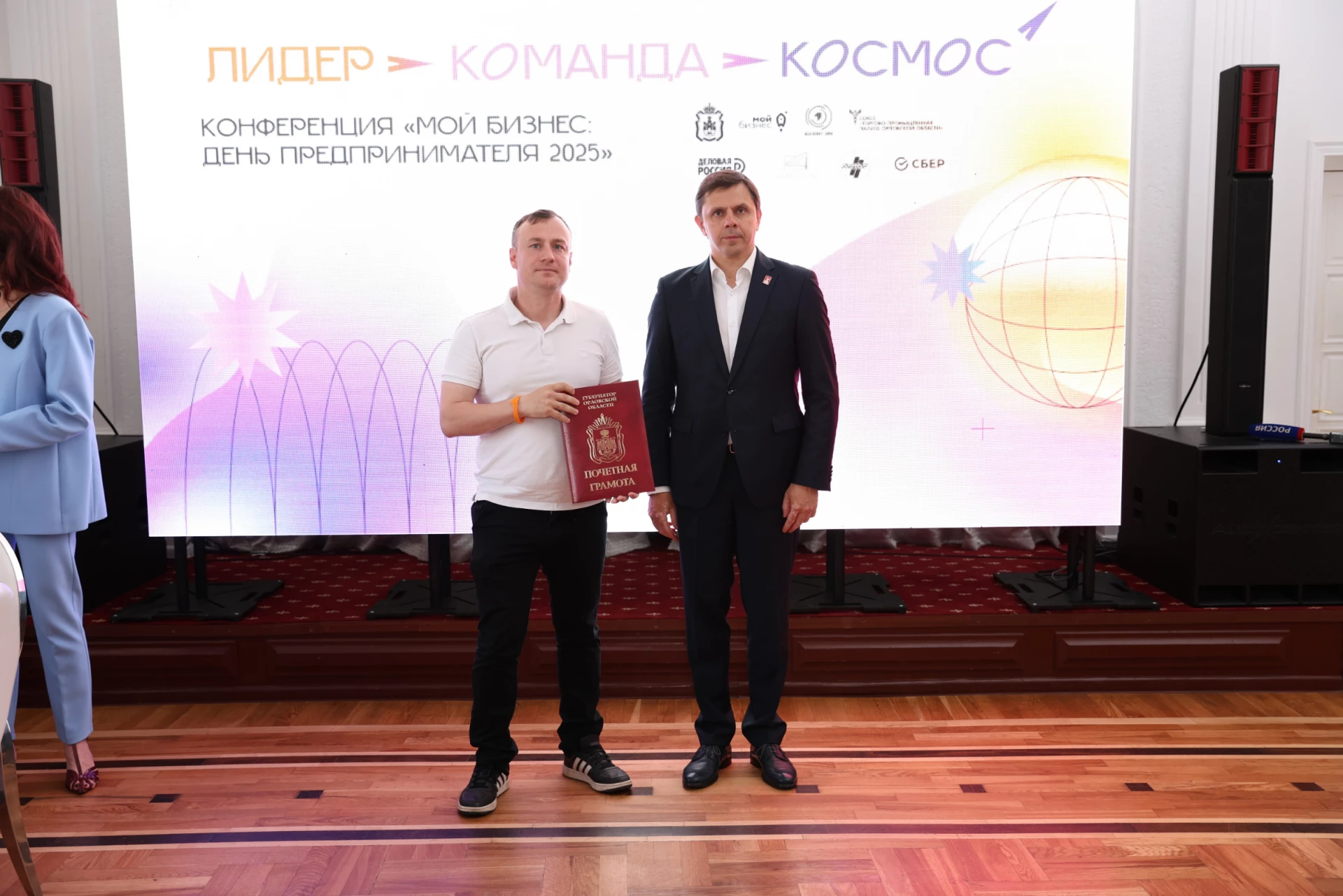 6 июня в Орле прошла конференция «Лидер-команда-космос», завершившая Неделю предпринимательства Орловской области. В рамках мероприятия Губернатор Орловской области Андрей Клычков вручил награды предпринимателям, в том числе и членам Орловской «ОПОРЫ РОССИИ», отметив их вклад в социально-экономическое развитие региона и помощь участникам СВО. Почетным гостем стал Герой России, летчик-космонавт, участник трех космических экспедиций Александр Мисуркин.