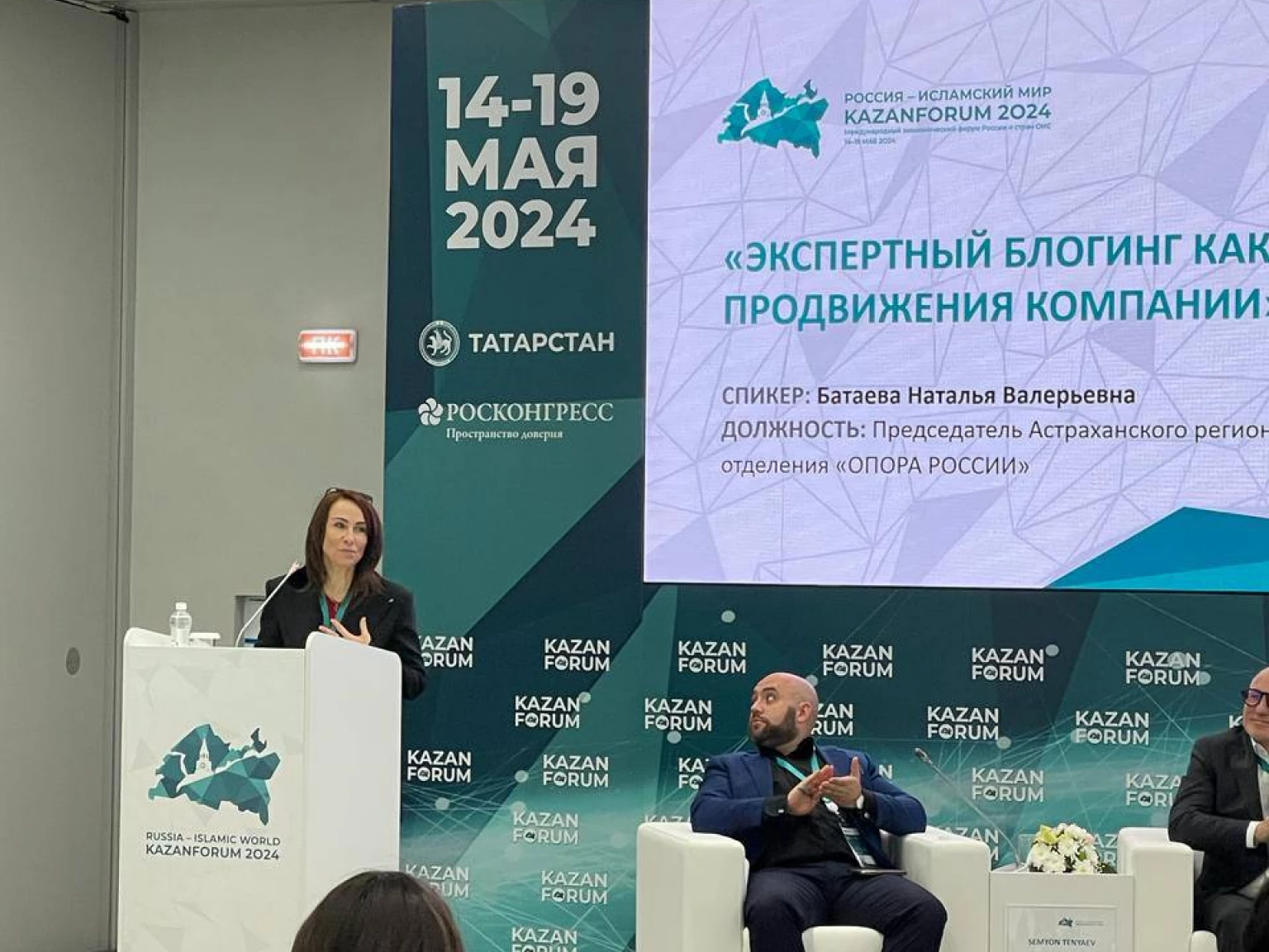 14-19 мая в Казани прошел международный экономический форум «Россия — Исламский мир: KazanForum», в котором приняли участие представители деловых кругов из российских регионов, стран Организации исламского сотрудничества и других государств. Деловая программа включала 12 тематических треков и 125 сессий, которые охватили спектр вопросов от международного сотрудничества и экономики до исламских финансов и индустрии халяль. Одним из спикеров площадки, посвященной экспертному блогингу, выступила Председатель Астраханского регионального отделения «ОПОРЫ РОССИИ» Наталья Батаева.