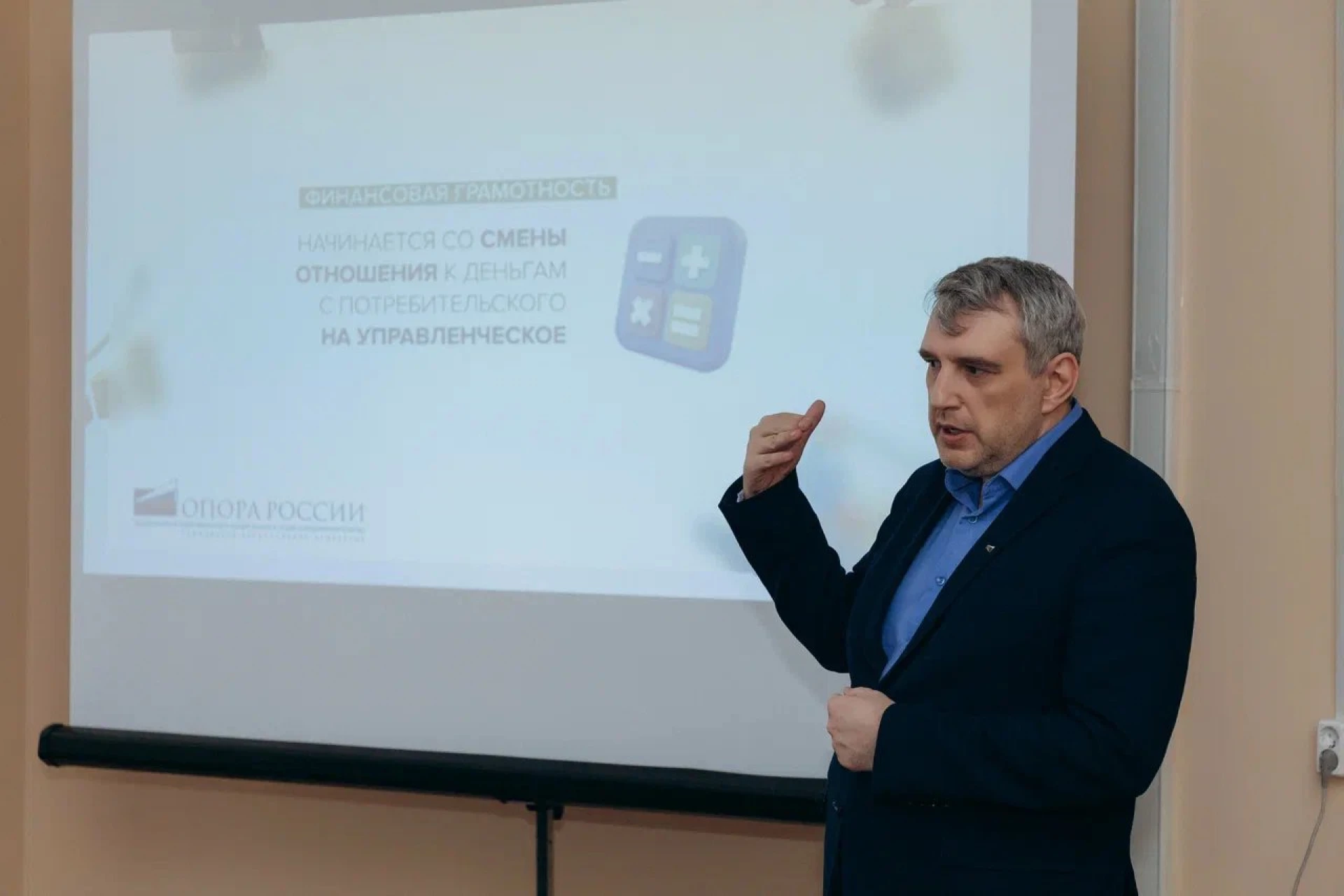 Заместитель председателя Тамбовского регионального отделения «ОПОРЫ РОССИИ» Сергей Коломников и Исполнительный директор реготделения Евгений Стома рассказали об основах финансовой грамотности, создании денежных резервов и управления ими, осознанном подходе к инвестированию.