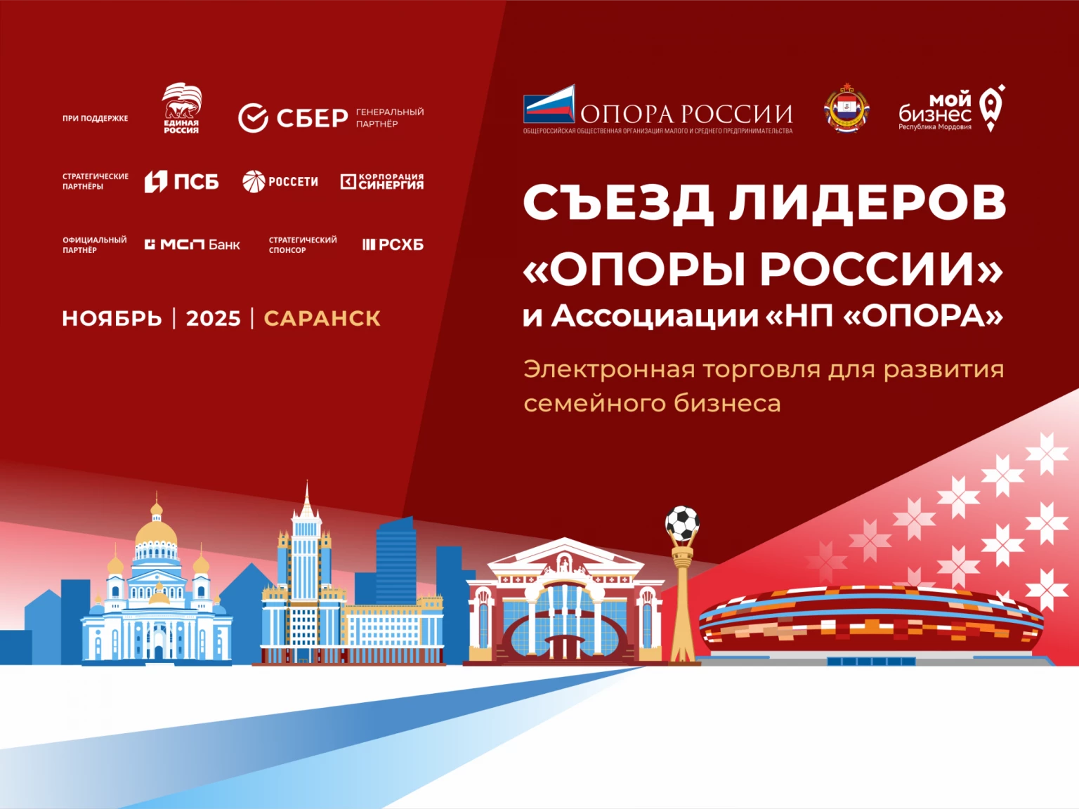 С 19 по 21 ноября в Саранске состоится Съезд лидеров «ОПОРЫ РОССИИ» и Ассоциации «НП «ОПОРА». Главная тема мероприятия: электронная торговля для развития МСП. В дискуссиях Съезда примут участие Глава Республики Мордовия Артем Здунов, представители ряда федеральных и региональных министерств и ведомств, банковского сообщества, институтов развития, а также предприниматели из более 65 регионов и другие спикеры. Также в рамках деловой программы эксперты обсудят вопросы корпоративной семейной политики, борьбы с контрафактом и серым импортом, защиты прав предпринимателей и др. Лидеры бизнес-объединения также подведут итоги региональной работы Организации и представят рейтинг региональных отделений за 2025 год.
