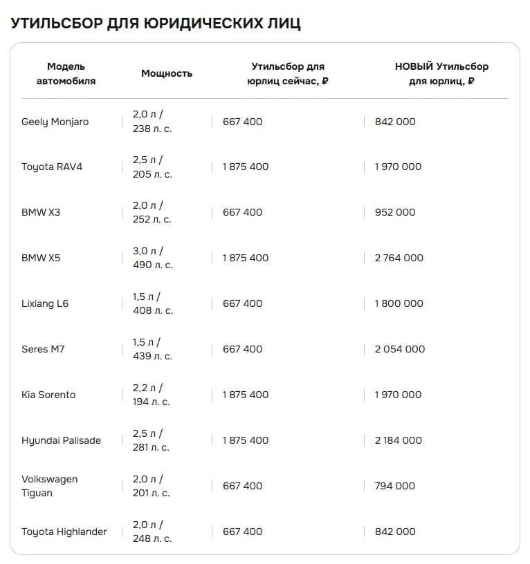 В качестве примера эксперт привел таблицы изменения стоимости утилизационного сбора для популярных автомобилей, ввозимых на территорию физическими и юридическими лицами.