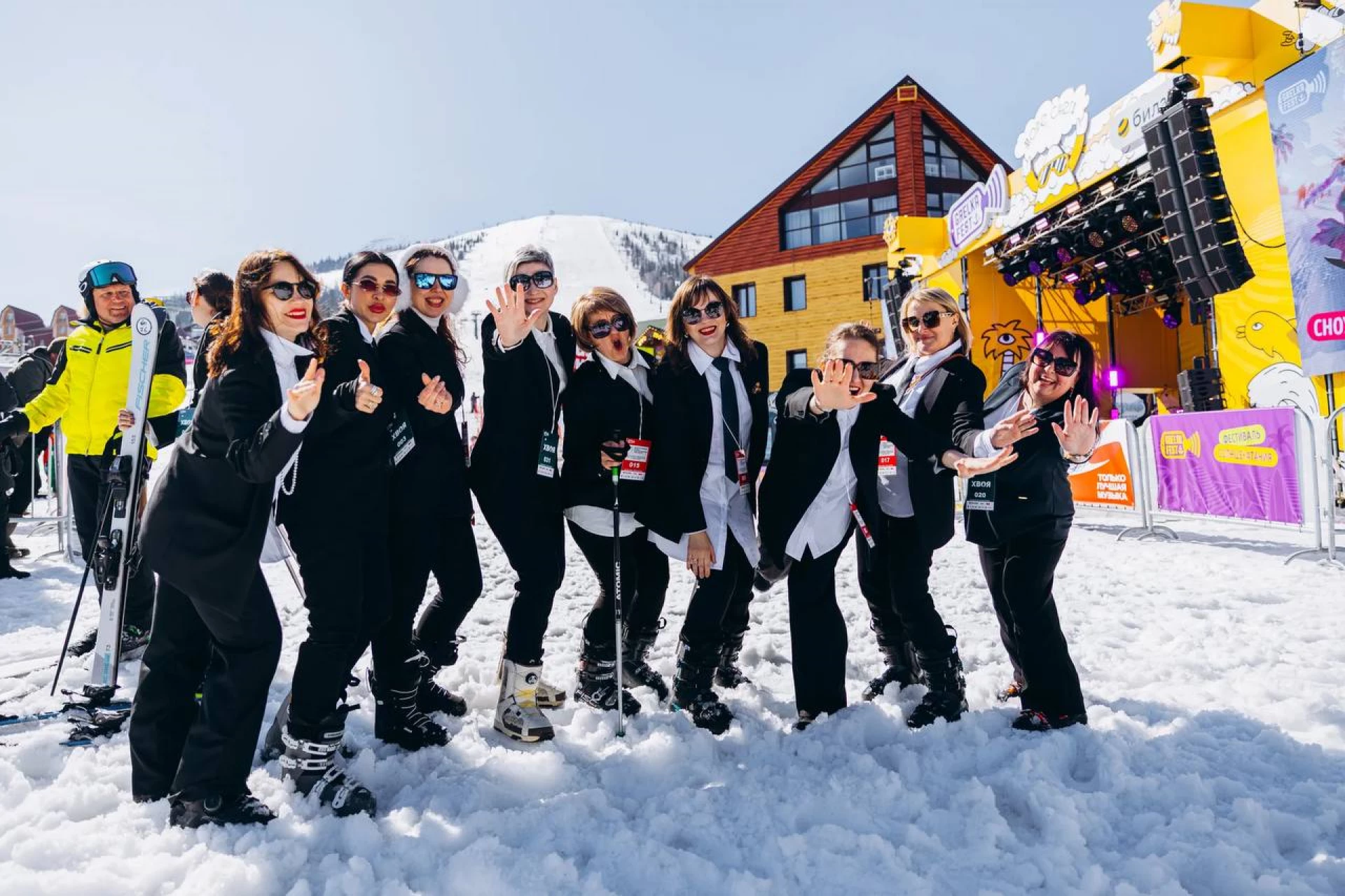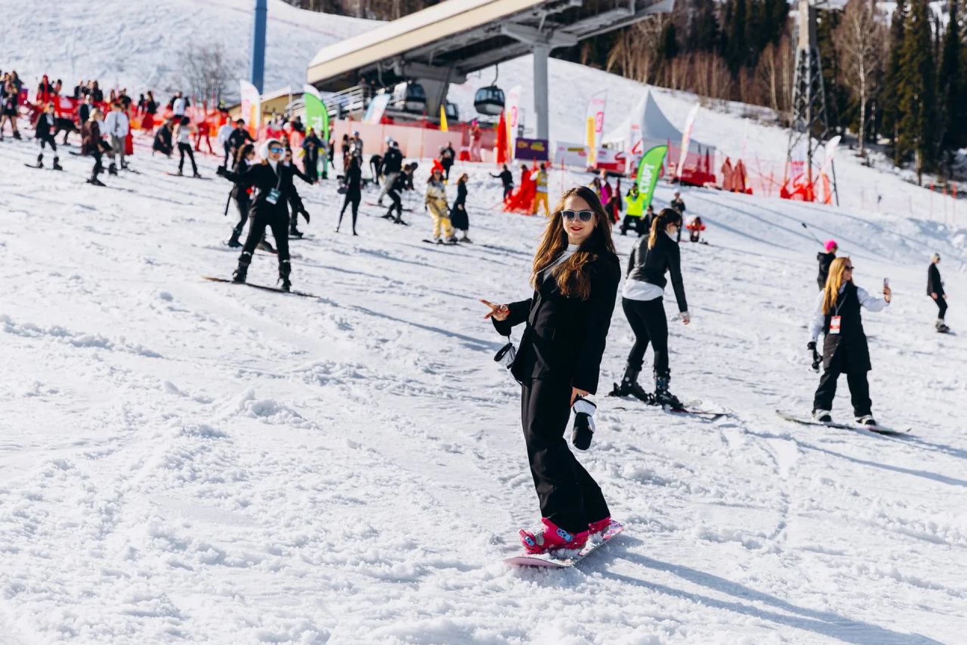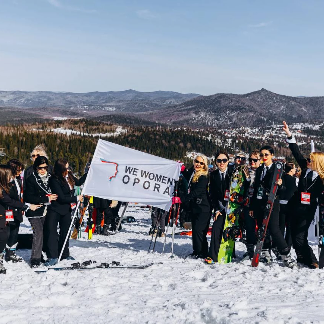 Женщины-предприниматели установили рекорд по спуску с горы в деловых костюмах в Шерегеше