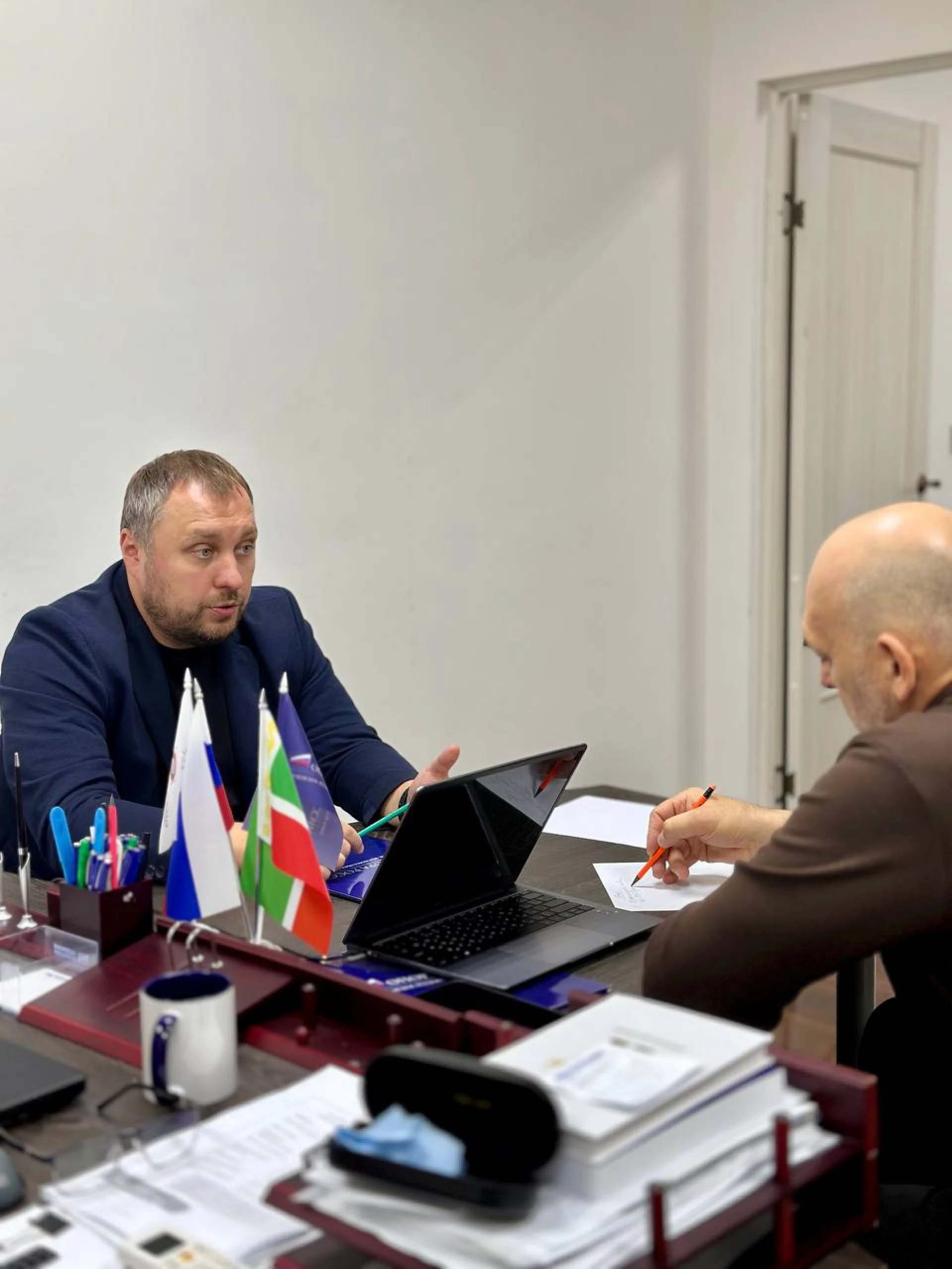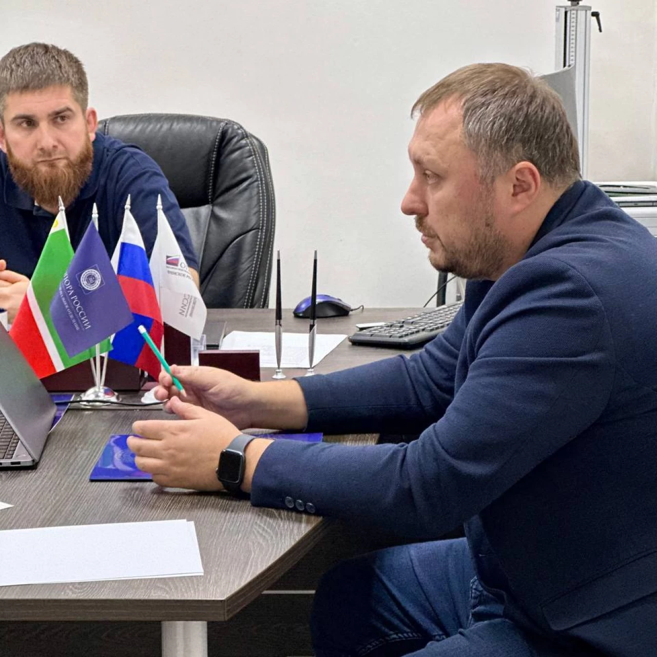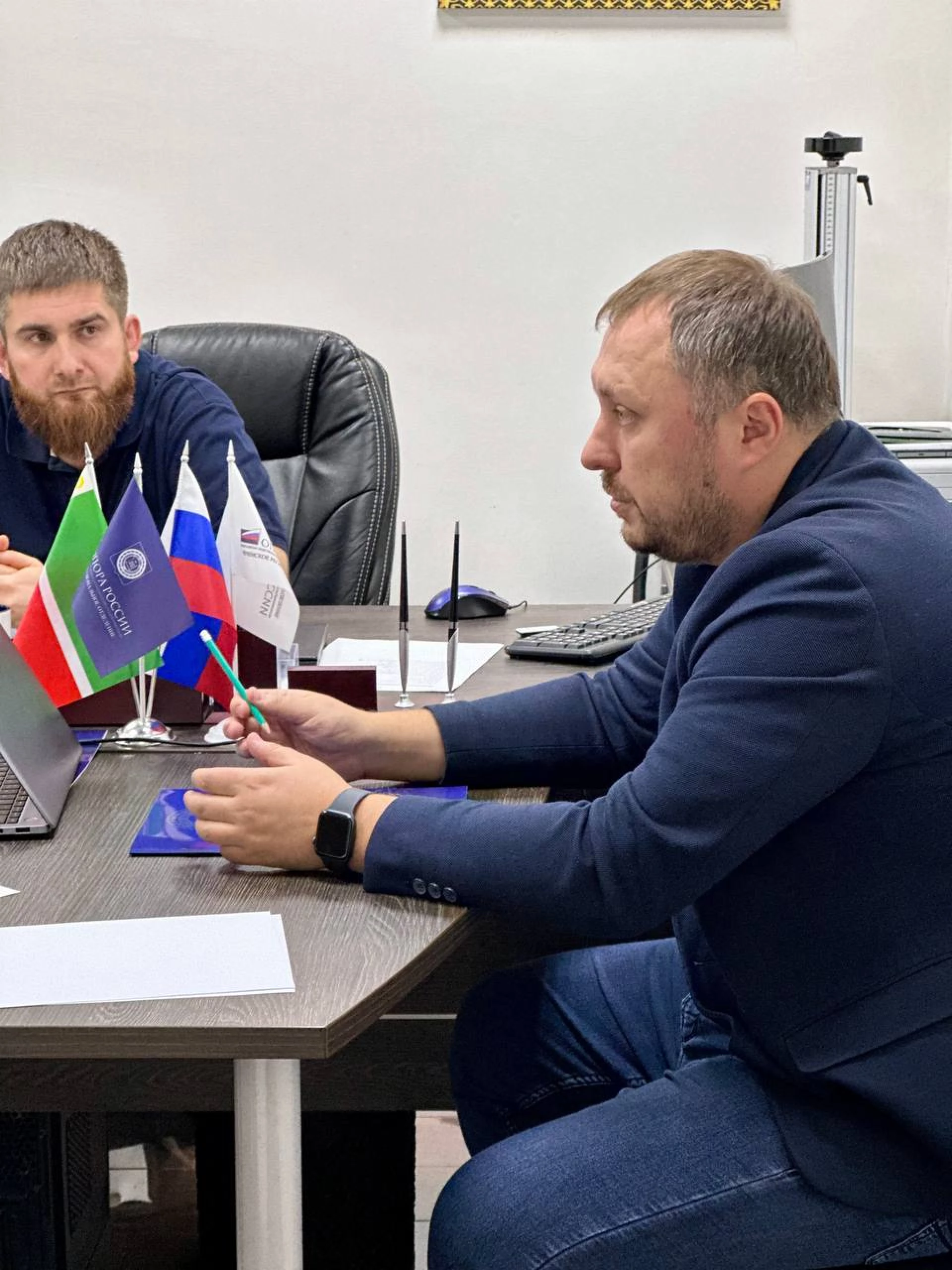 В офисе Чеченского регионального отделения «ОПОРЫ РОССИИ» состоялась встреча Исполнительного директора Расула Цамаева, Председателя Комиссии по правовым вопросам Отделения Сайдаша Гагаева с территориальным менеджером по работе с партнерами ПАО «Сбербанк» Максимом Бабыниным.
