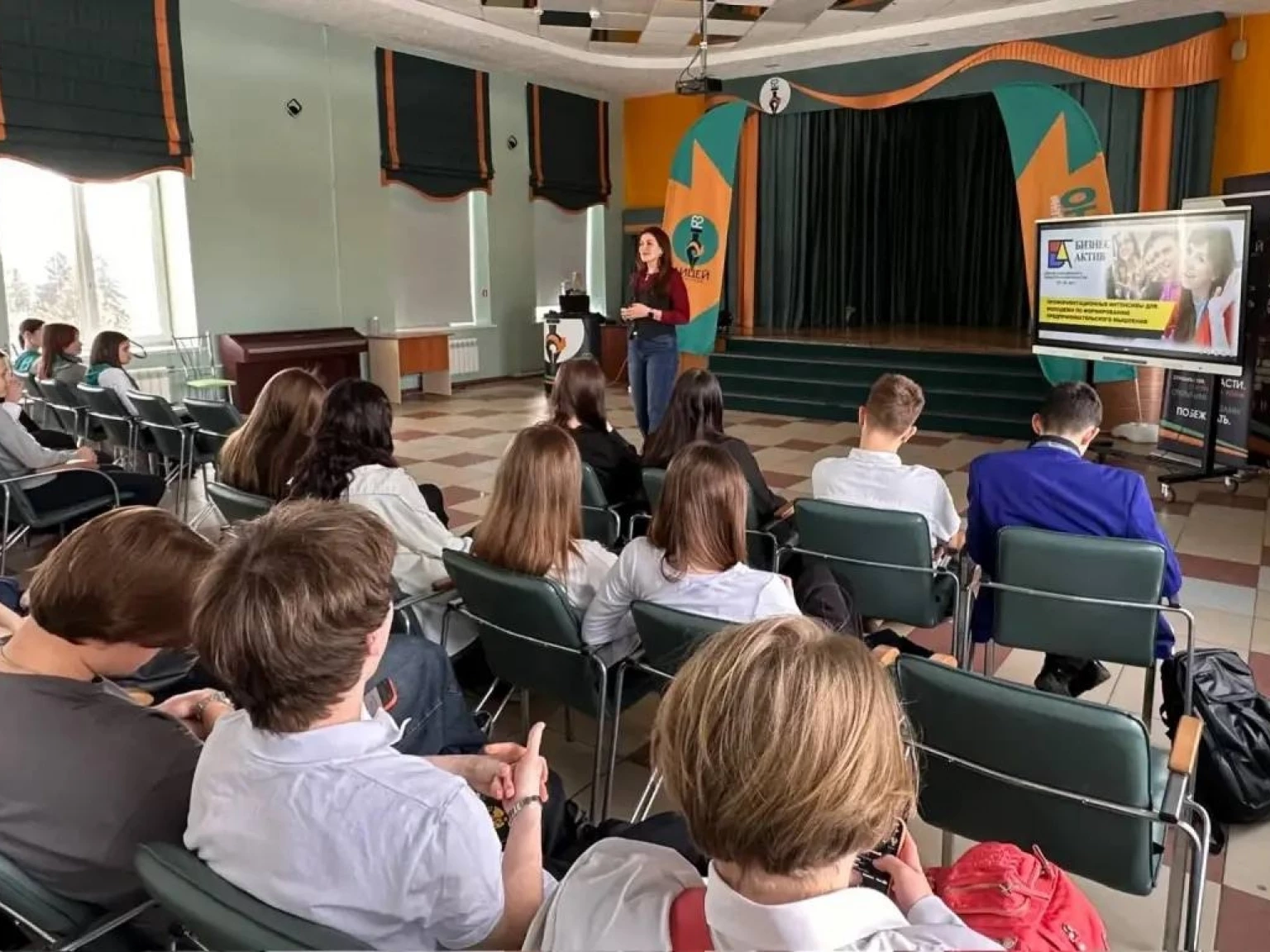 В свою очередь Юлия Токмашева акцентировала внимание на важности общения с действующими предпринимателями, основателями разноплановых бизнесов и знакомства с их компаниями изнутри и пригласила ребят в профориентационный проект «БизнесАктив».