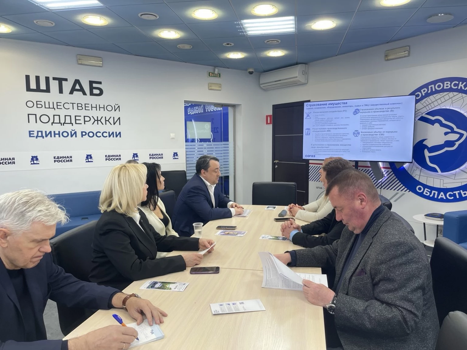 Встречу открыл координатор федеральных партийных проектов «Предпринимательство» и «Выбирай свое» в Орловской области Владимир Пукаев. Спикер отметил уникальность практики страхования имущества от подобных рисков: «В международном опыте нет практики страхования в прифронтовых, фронтовых зонах. В России на сегодня при субсидировании государства разрешили страховать промышленные объекты, собственность реального сектора экономики. Это очень актуально и ресурсно для граждан, бизнеса, а также органов местного самоуправления».