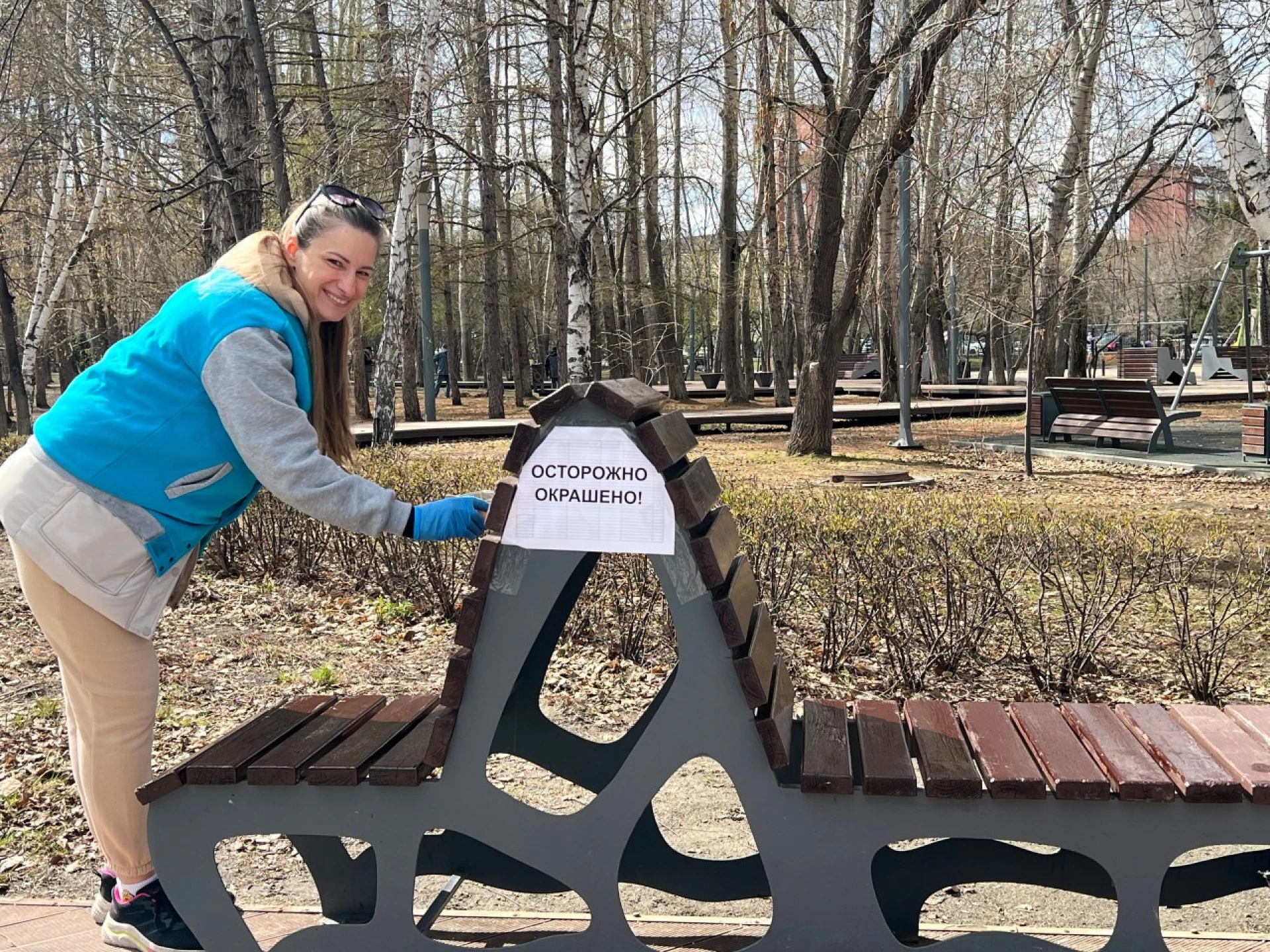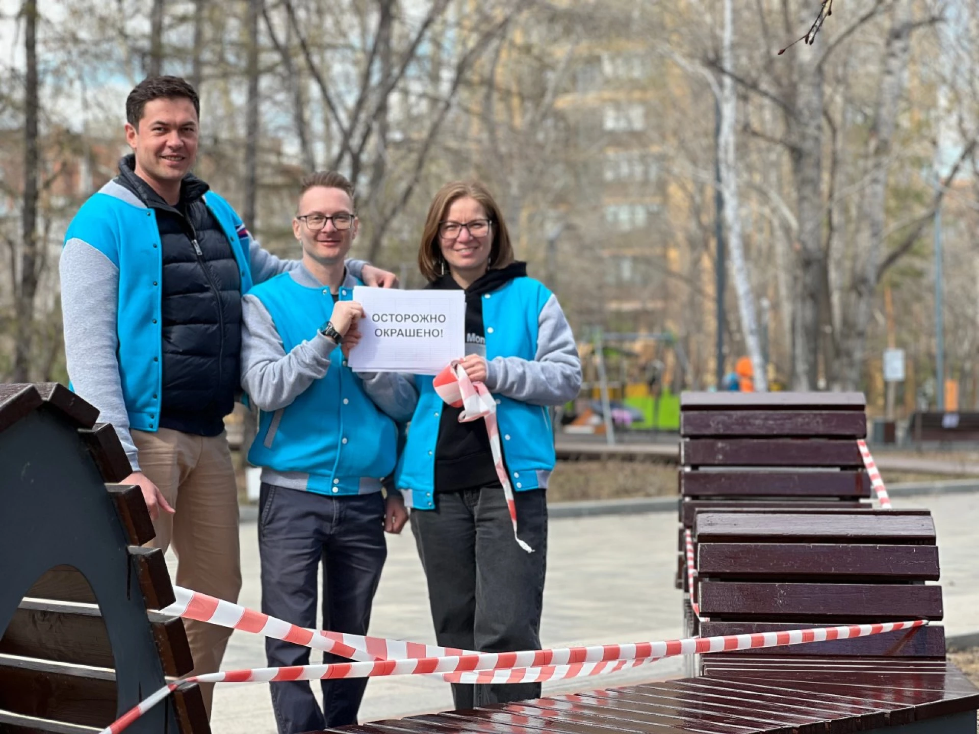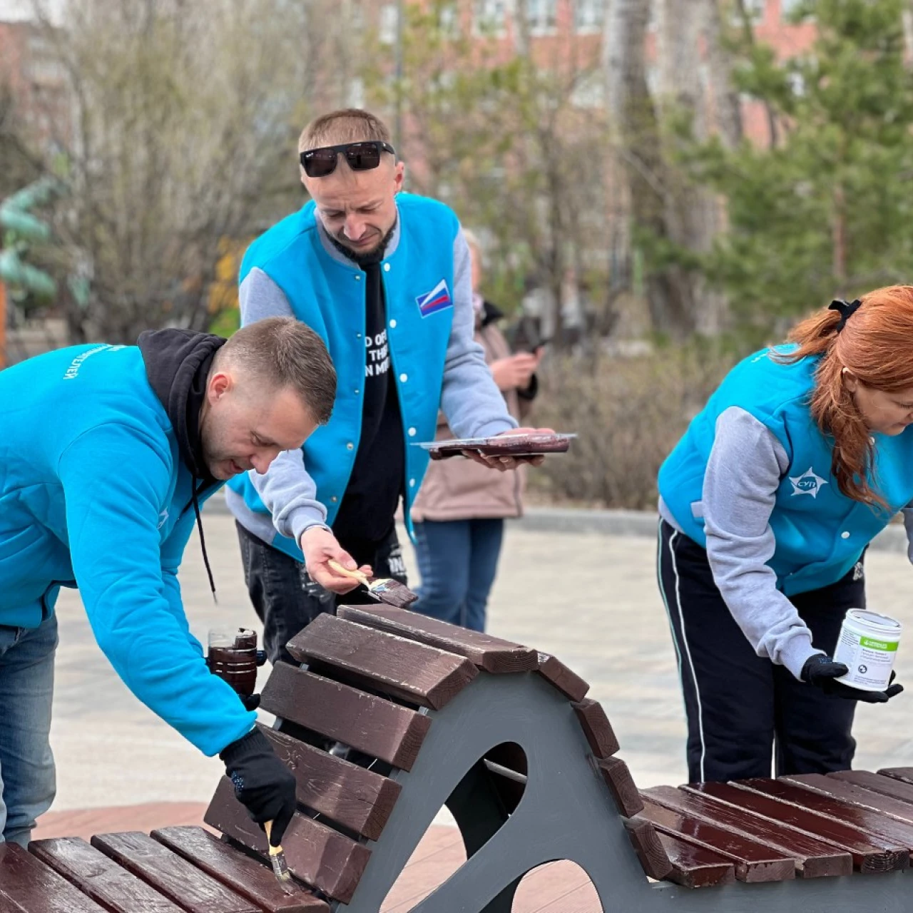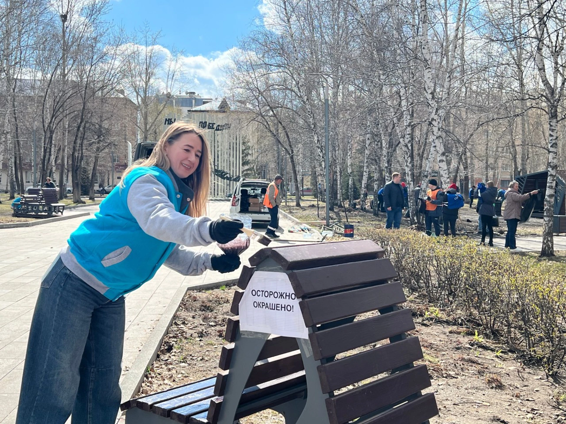 Совместными усилиями участники акции очистили территорию сквера от прошлогодней листвы и мусора. Особое внимание уделили элементам благоустройства — предприниматели обновили покрытие и покрасили порядка 26 парковых скамеек.