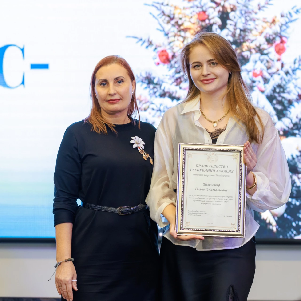 За активную общественную деятельность и существенный вклад в раскрытие бизнес потенциала, консолидацию и поддержку предпринимательского сообщества Хакасии награды присуждены: