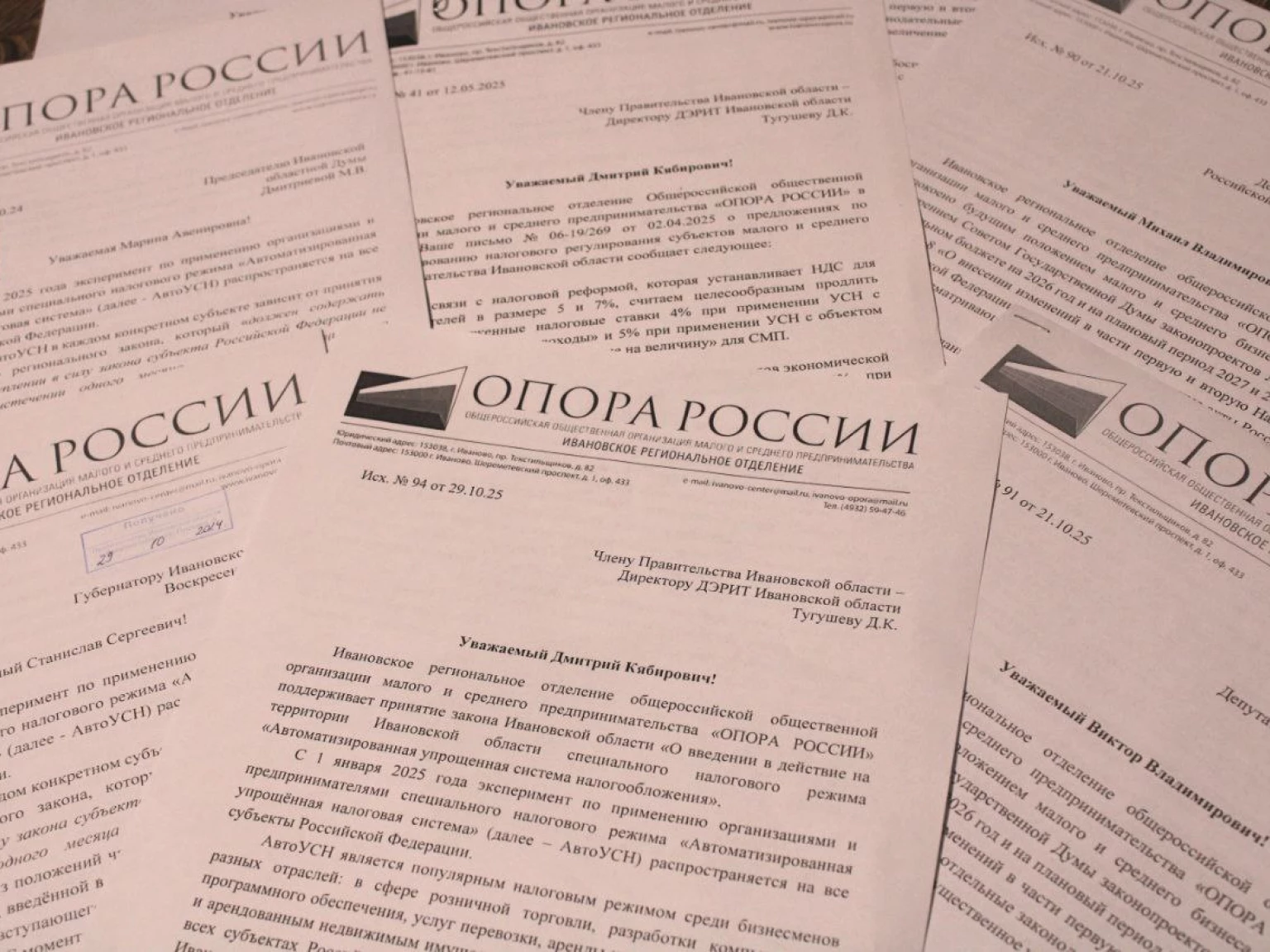 - летом 2025 года состоялась встреча Ивановской «ОПОРЫ РОССИИ» с Дмитрием Тугушевым, возглавлявшим на тот момент региональный Департамент экономического развития и торговли. Главной темой обсуждения стала целесообразность внедрения налогового спецрежима в Ивановской области;