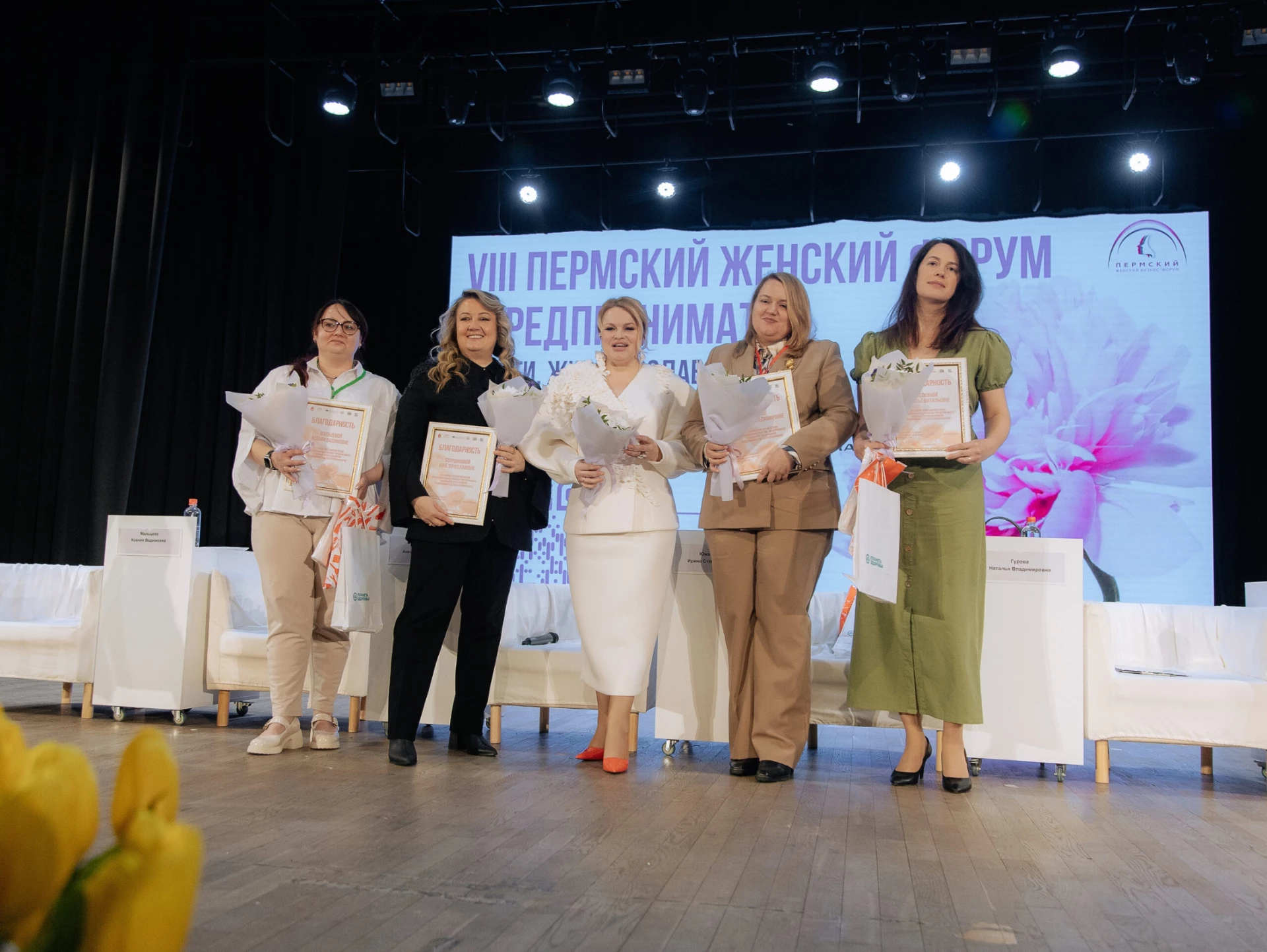 В течение дня действовала выставочная зона Бизнес Экспо, где предприниматели представили свои компании, товары и услуги, а участницы смогли познакомиться с региональными брендами и установить новые деловые контакты.