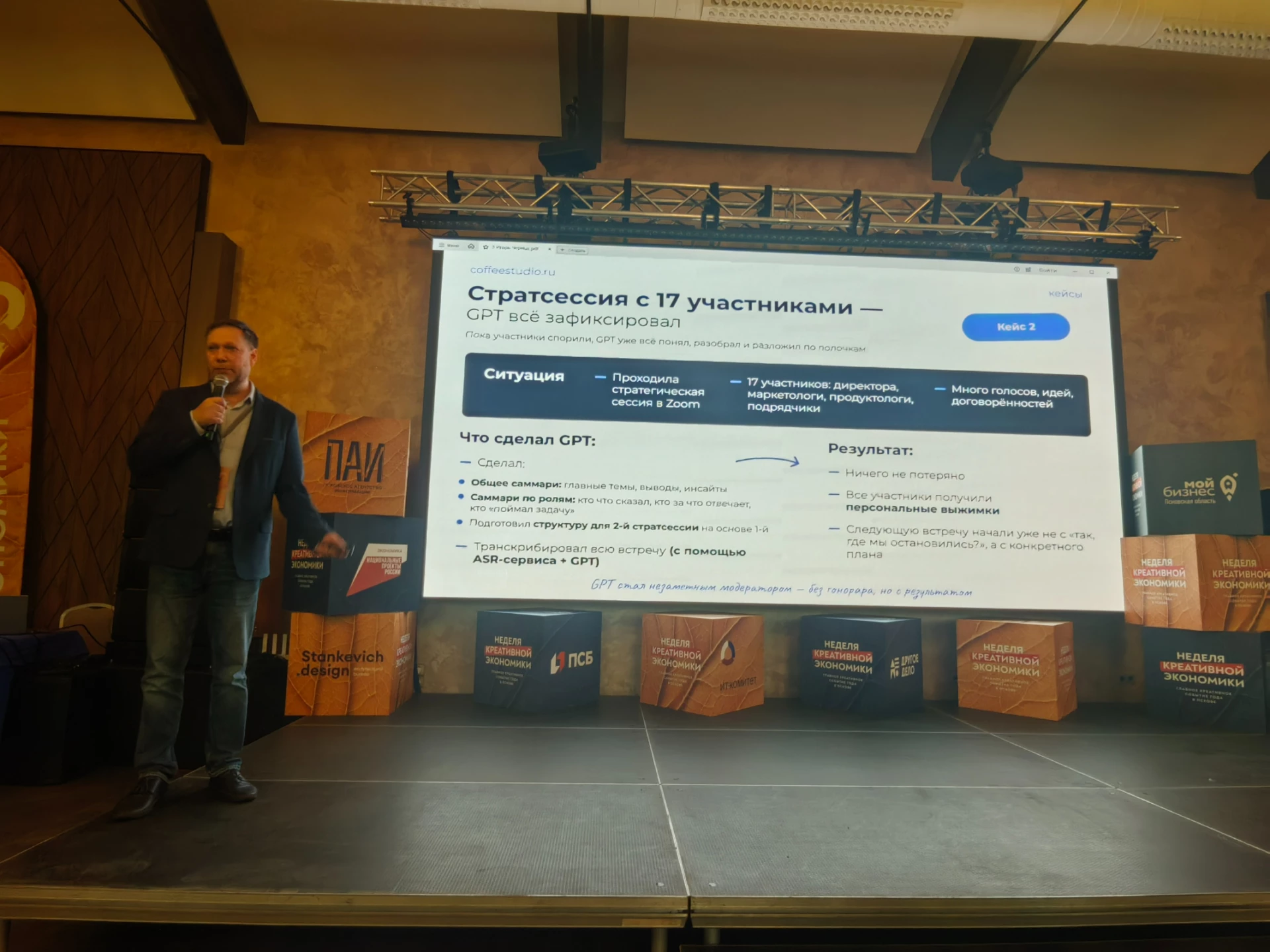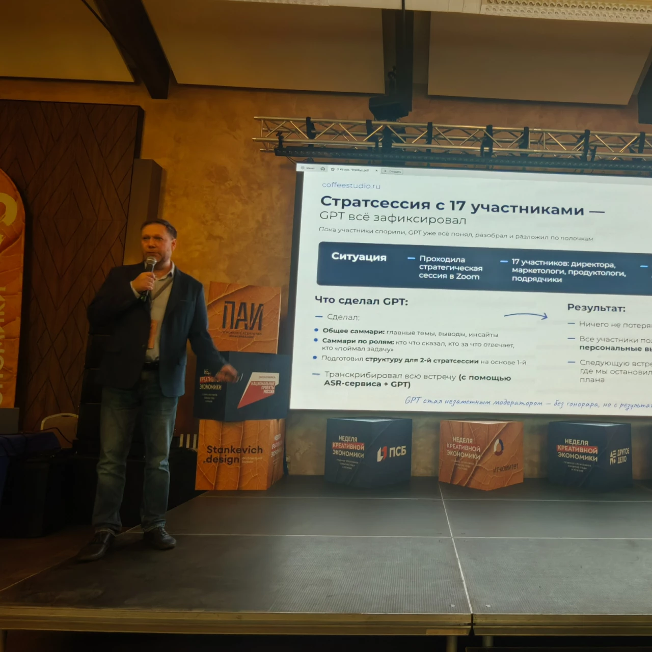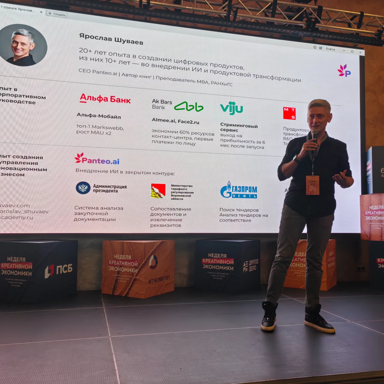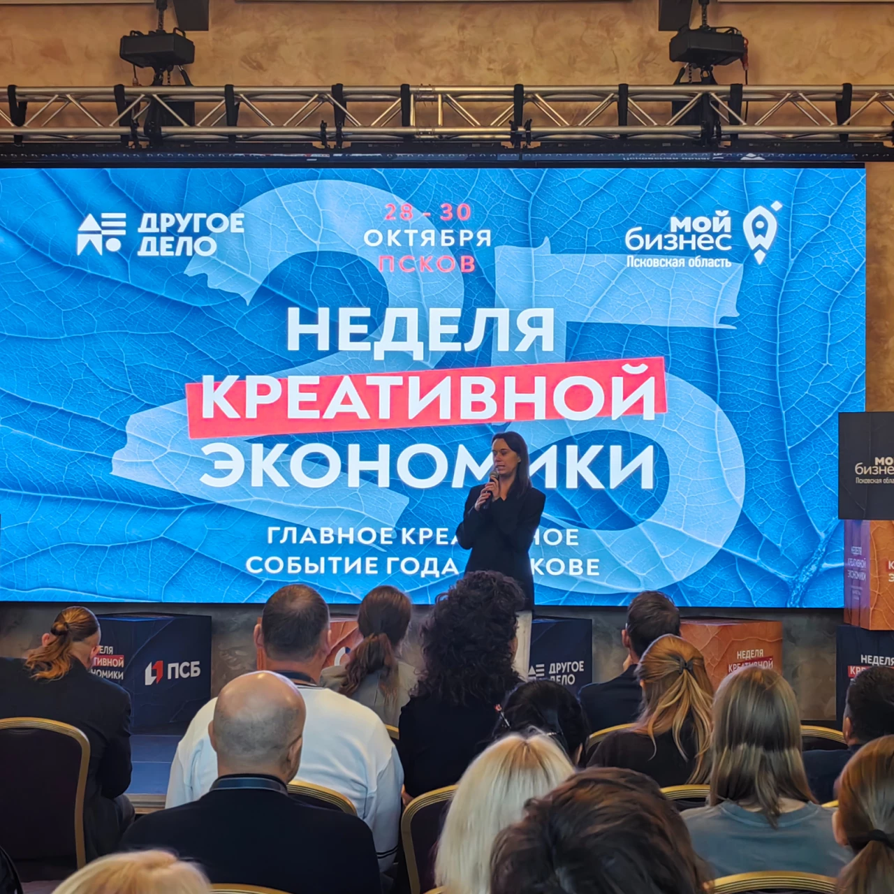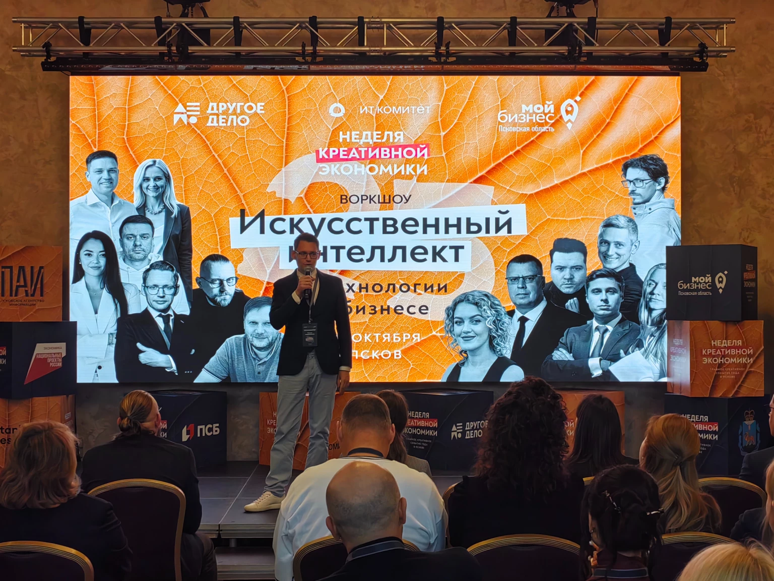 29 октября в рамках Недели креативной экономики состоялось воркшоу «Искусственный интеллект и технологии в бизнесе», ориентированное на вопросы практического применение ИИ в маркетинге, HR, продажах и креативных индустриях. Организатор мероприятия — центр «Мой бизнес» в Псковской области, профильный партнер — ИТ-комитет Псковской «ОПОРЫ РОССИИ». Воркшоу объединило почти 300 участников — предпринимателей, представителей ИТ-компаний, маркетологов, дизайнеров и специалистов по управлению.