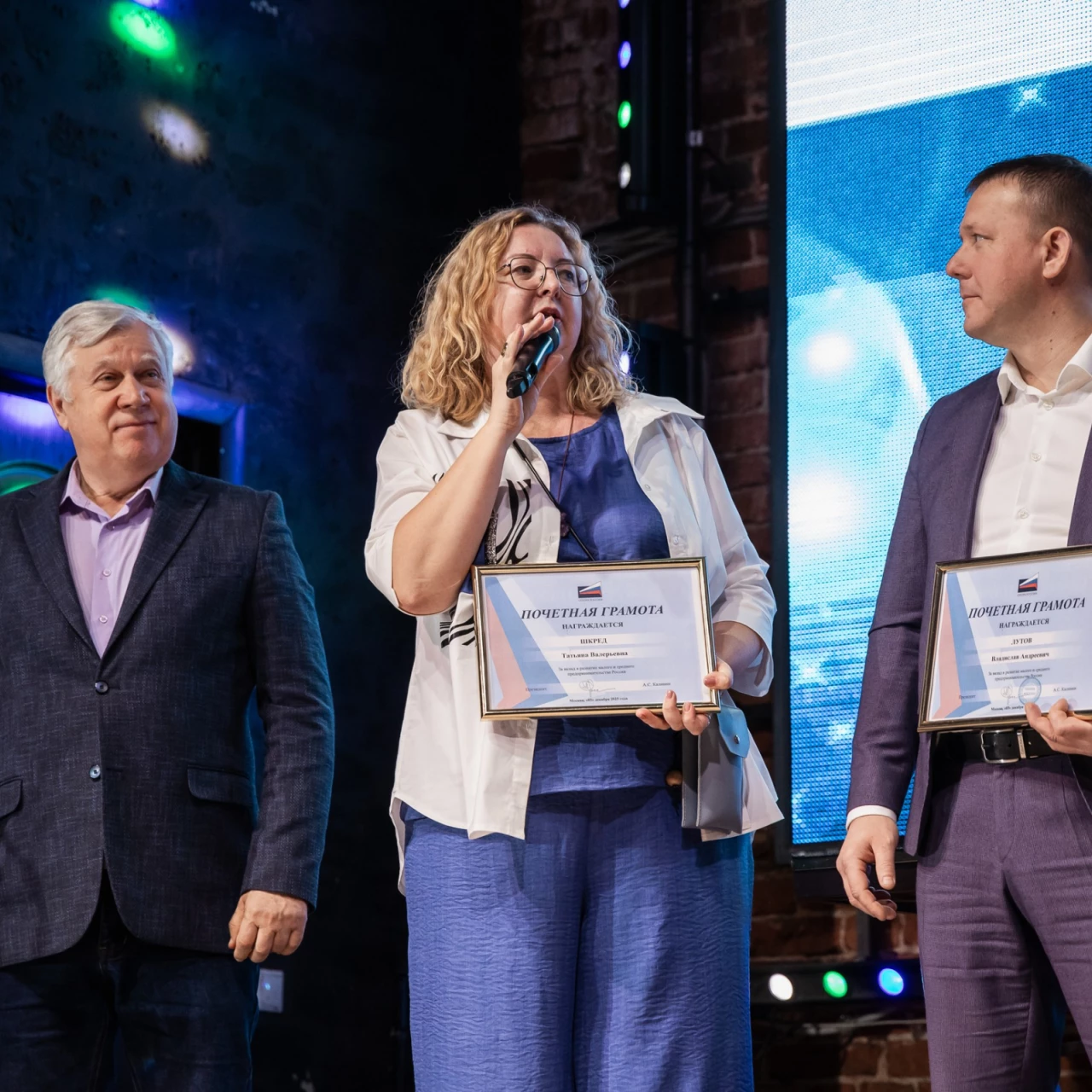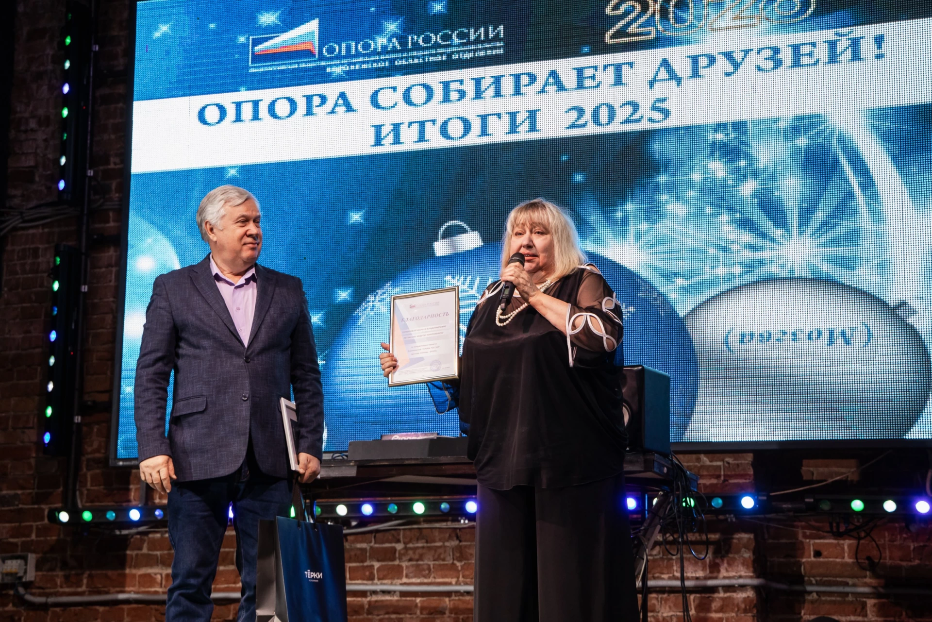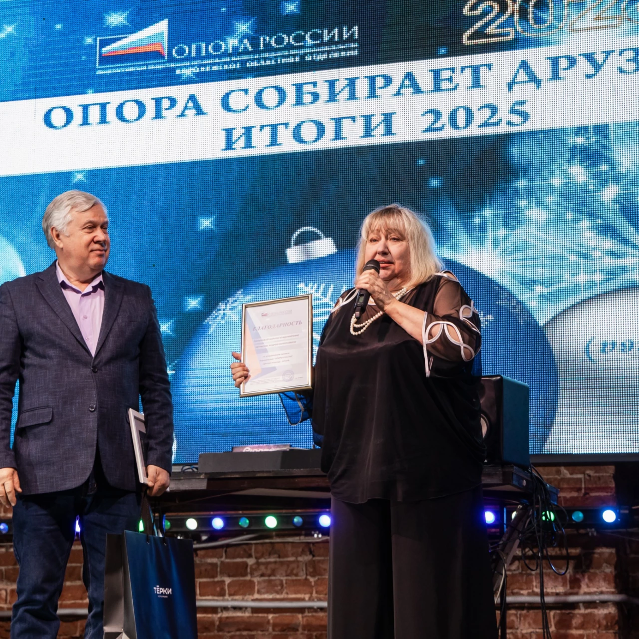 Благодарность за экспертную работу в отделении и активное участие в просветительских мероприятиях для предпринимателей в 2025 году вручили активным экспертам Воронежской «ОПОРЫ РОССИИ». Кроме того, Сергей Наумов вручил Благодарность заместителю Председателя Воронежской «ОПОРЫ РОССИИ» Марине Лютиковой, которая вместе с супругом ведет активную деятельность в рамках проекта «Срочная помощь — ОПОРА», направленного на поддержку бойцов СВО.