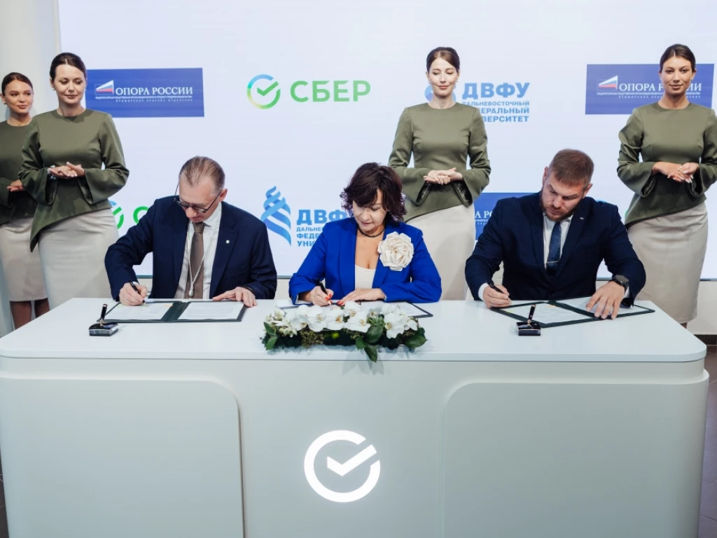 На полях Восточного экономического форума состоялось подписание соглашения о сотрудничестве между Приморской «ОПОРОЙ РОССИИ», ПАО Сбербанк и Дальневосточным федеральным университетом (ДВФУ). Документ закладывает основу для системной работы по развитию молодежного технологического предпринимательства и усиления практической направленности образования в регионе.