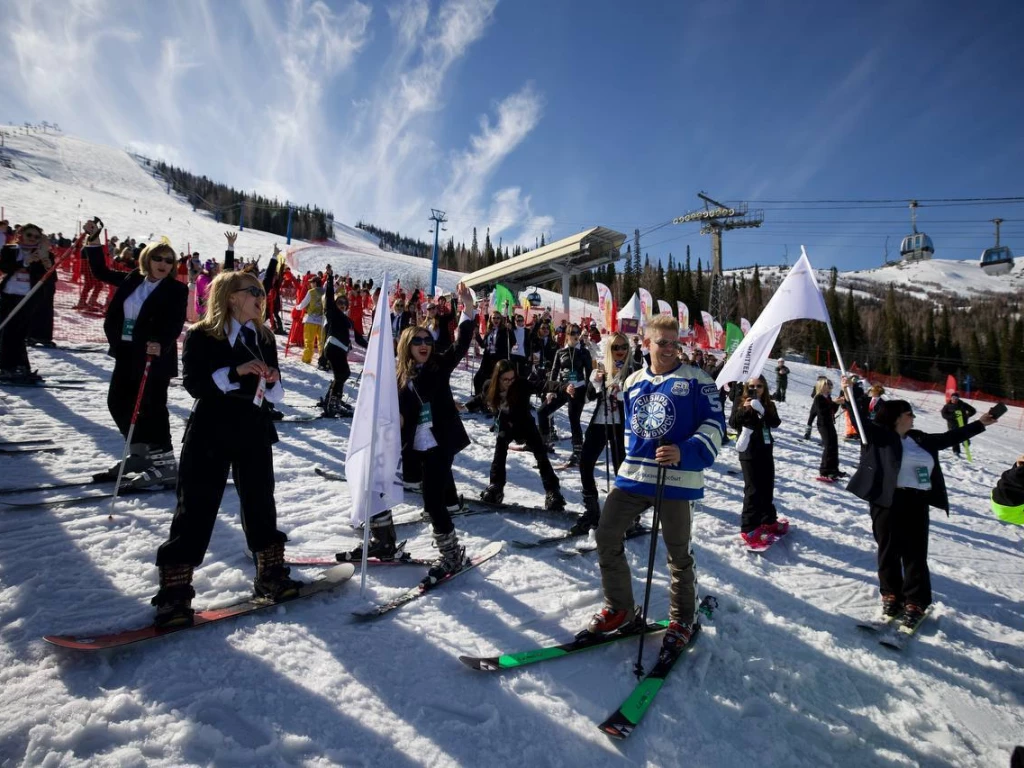 Женщины-предприниматели установили рекорд по спуску с горы в деловых костюмах в Шерегеше