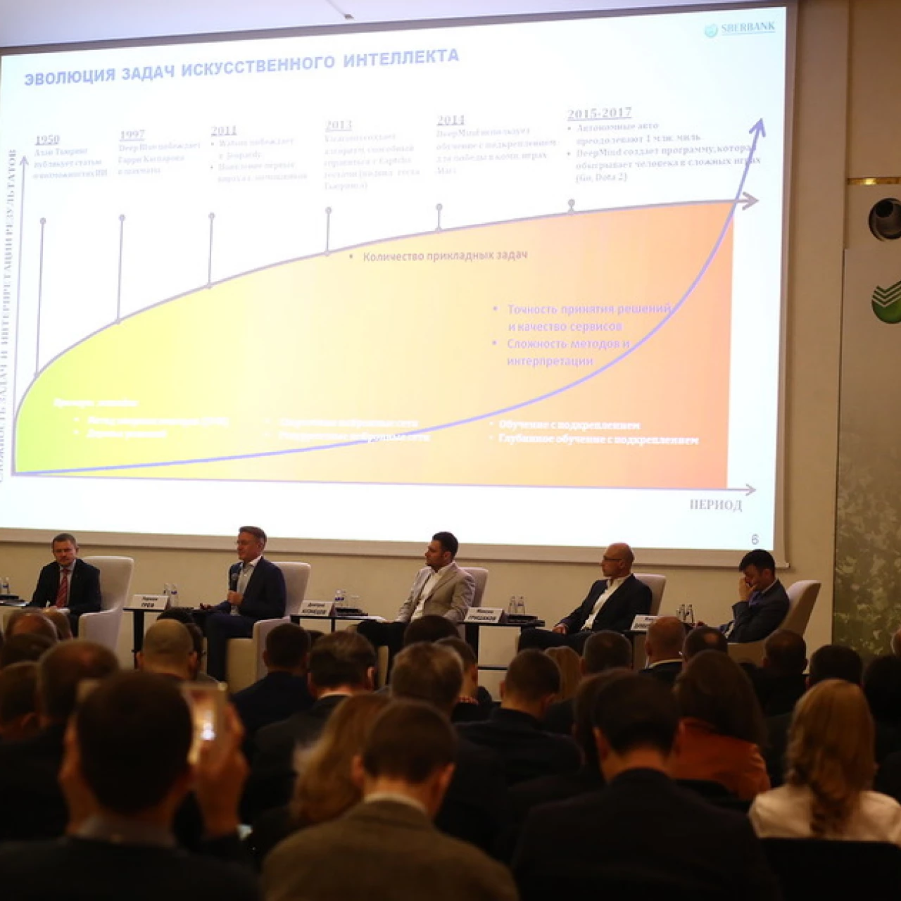 Председатель Правления ПАО «Сбербанк» Герман Греф обрисовал особенности цифровой экономики, показал сферы бизнеса, в которых IT-технологии в самое ближайшее время приведут к кардинальным изменениям, а также рассказал о том, какие, по его мнению, гигантские возможности малому бизнесу открывает блокчейн и использование открытых программных платформ. В ближайшие два года квантовые технологии произведут революцию в медицине и других сферах жизни, гаджеты станут ещё «умнее», а технологии распознавания лиц дойдут до совершенства. Особое внимание в своем выступлении глава Сбербанка уделил искусственному интеллекту (ИИ) и возможностям его использования. Целый ряд инструментов ИИ уже доступен для решения стандартных задач, в том числе активно используются самим Сбербанком. При этом он выразил озабоченность, что развитие и всё более широкое применение ИИ поставит перед человечеством глобальные этические и мировоззренческие вопросы, на которые пока нет ответов. Герман Греф также сообщил, что Сбербанк и «ОПОРА РОССИИ» договорились о намерении сделать всплеск новых знаний и понимания того, куда движется сегодня цифровая экономика. «Цифровизация есть новая волна, которая может существенно поднять долю малого бизнеса в ВВП. Цифровизация дает огромное количество новых возможностей», - заключил он.