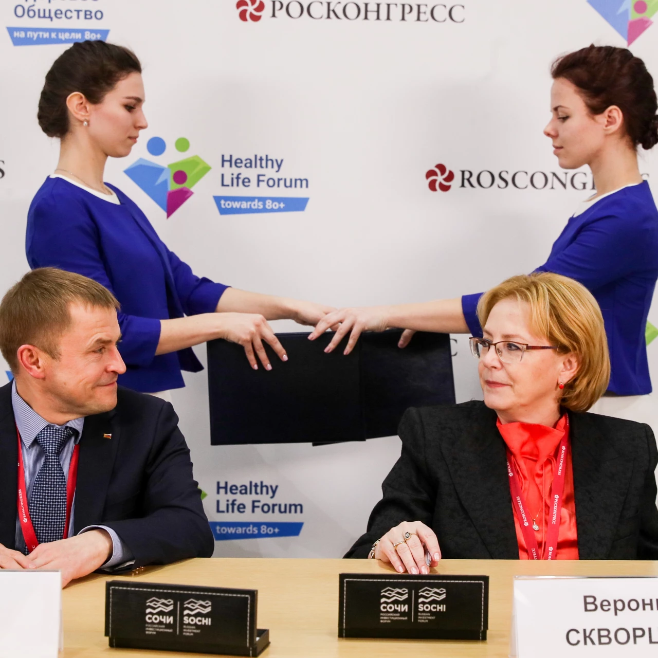 В рамках Российского инвестиционного форума в Сочи состоялось подписание соглашения о сотрудничестве между «ОПОРОЙ РОССИИ» и Министерством здравоохранения Российской Федерации. Документ подписали Президент Организации Александр Калинин и Министр здравоохранения Вероника Скворцова.