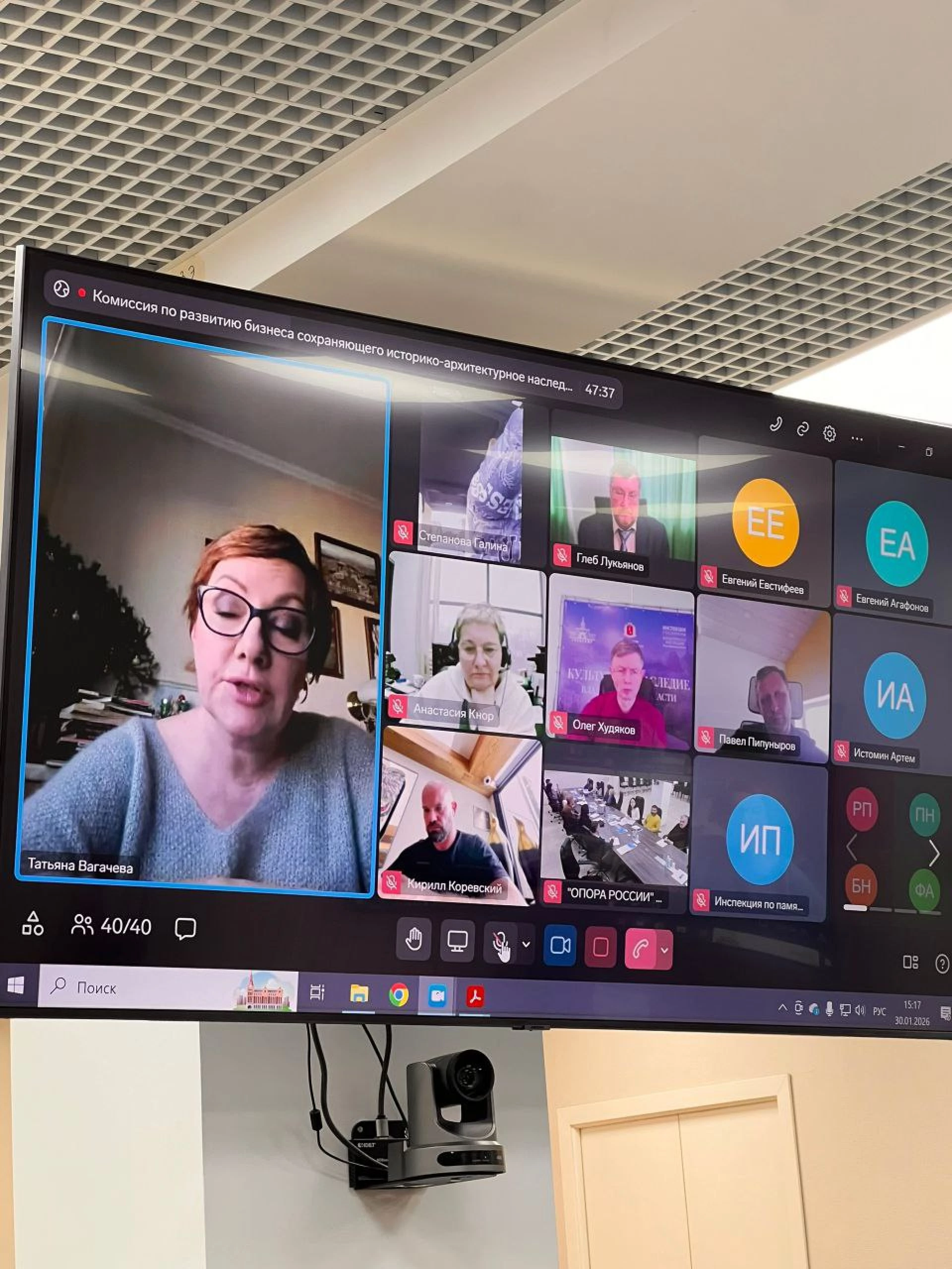 30 января состоялось совместное заседание Комиссии «ОПОРЫ РОССИИ» по развитию бизнеса, сохраняющего историко-архитектурное наследие, рабочей группы при Комиссии и Ассоциации «Клуб инвесторов в историческую недвижимость».