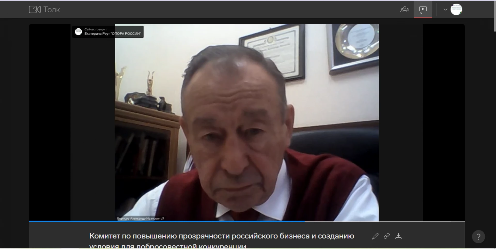 8 ноября прошло очередное заседание Комитета «ОПОРЫ РОССИИ» по повышению прозрачности российского бизнеса и созданию условий для добросовестной конкуренции. В мероприятии приняли участие представители из ТПП РФ, Российского общества оценщиков, Ассоциации пекарей и кондитеров. Также участниками стали Первый вице-президент «ОПОРЫ РОССИИ» Марина Блудян и Исполнительный директор бизнес-объединения Андрей Шубин.