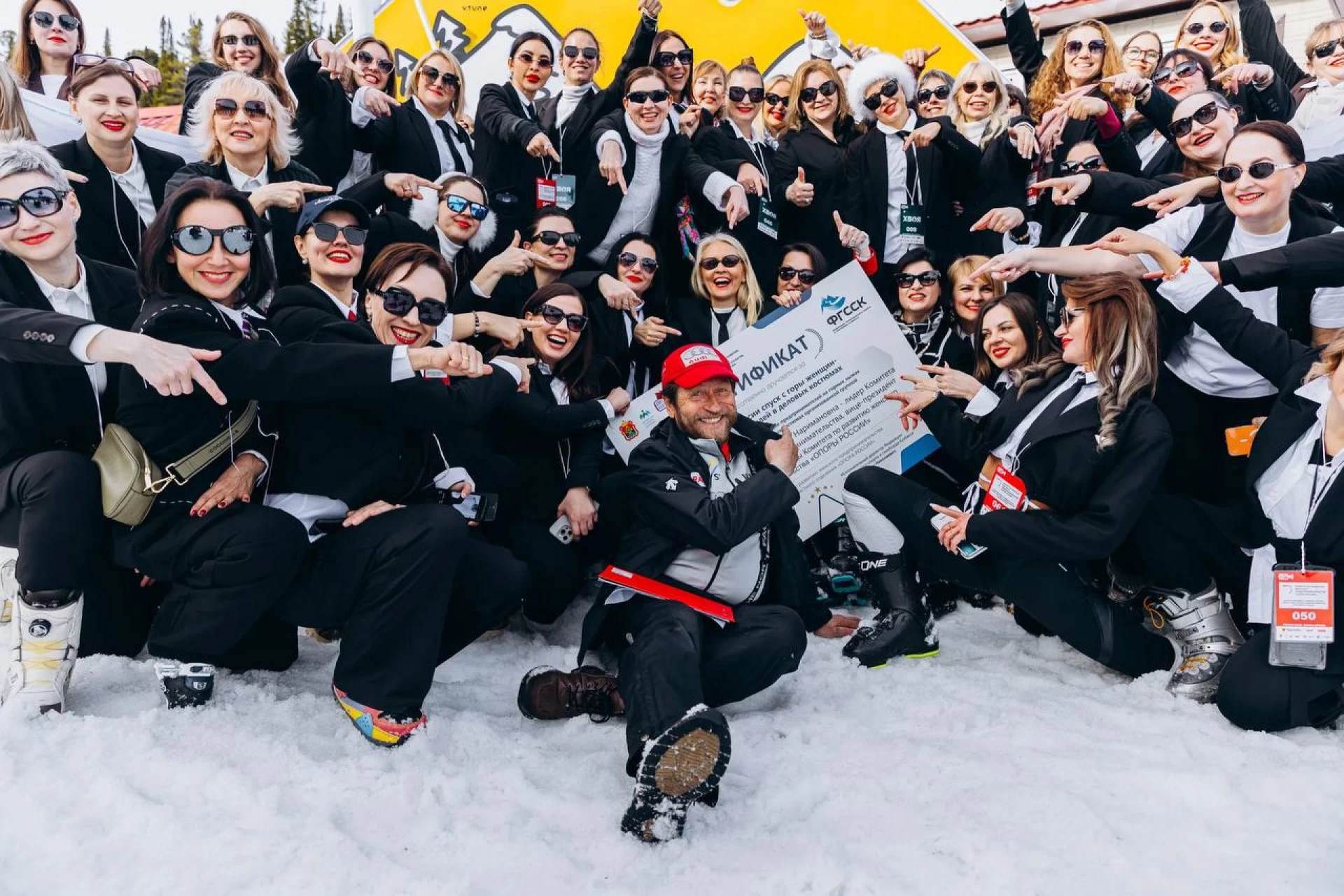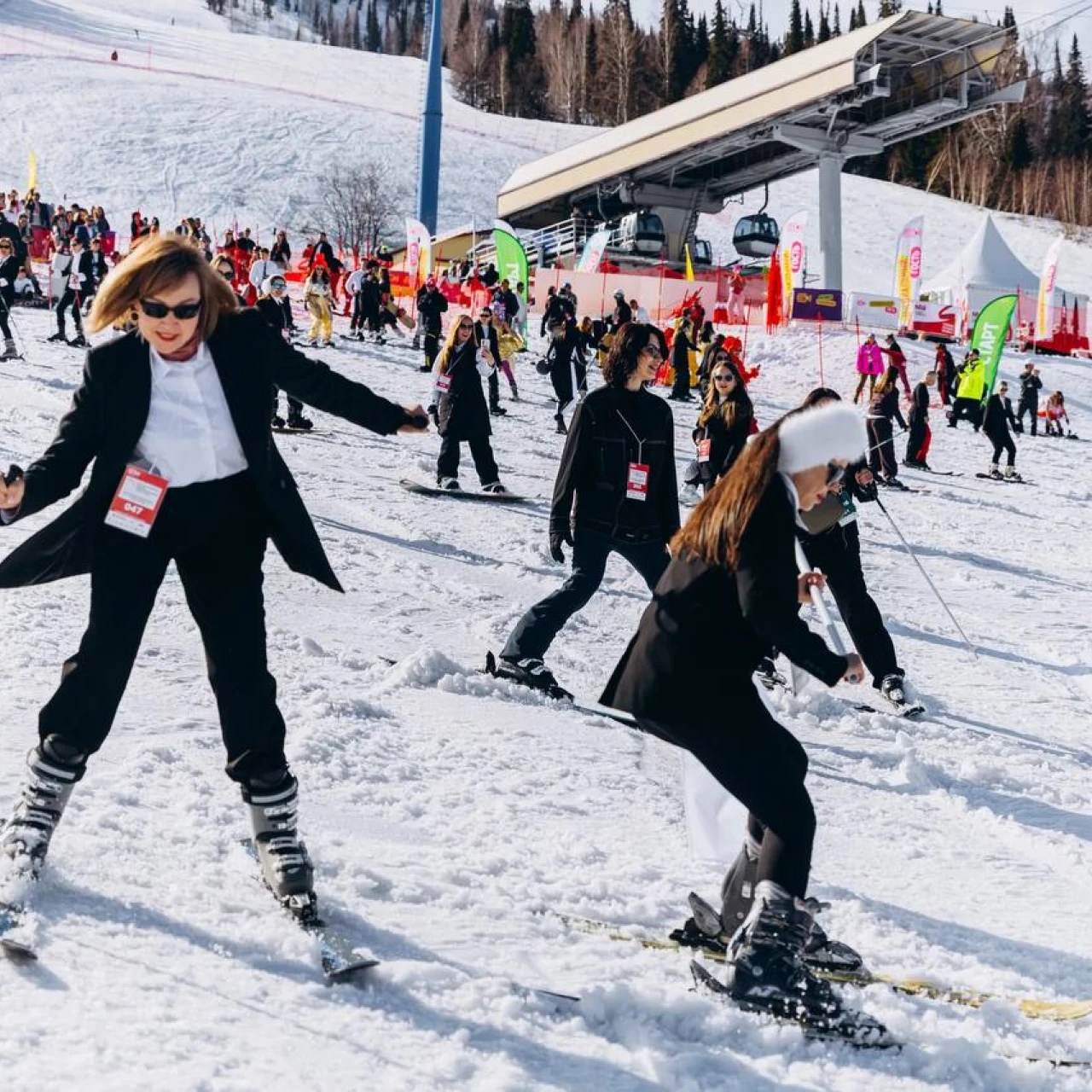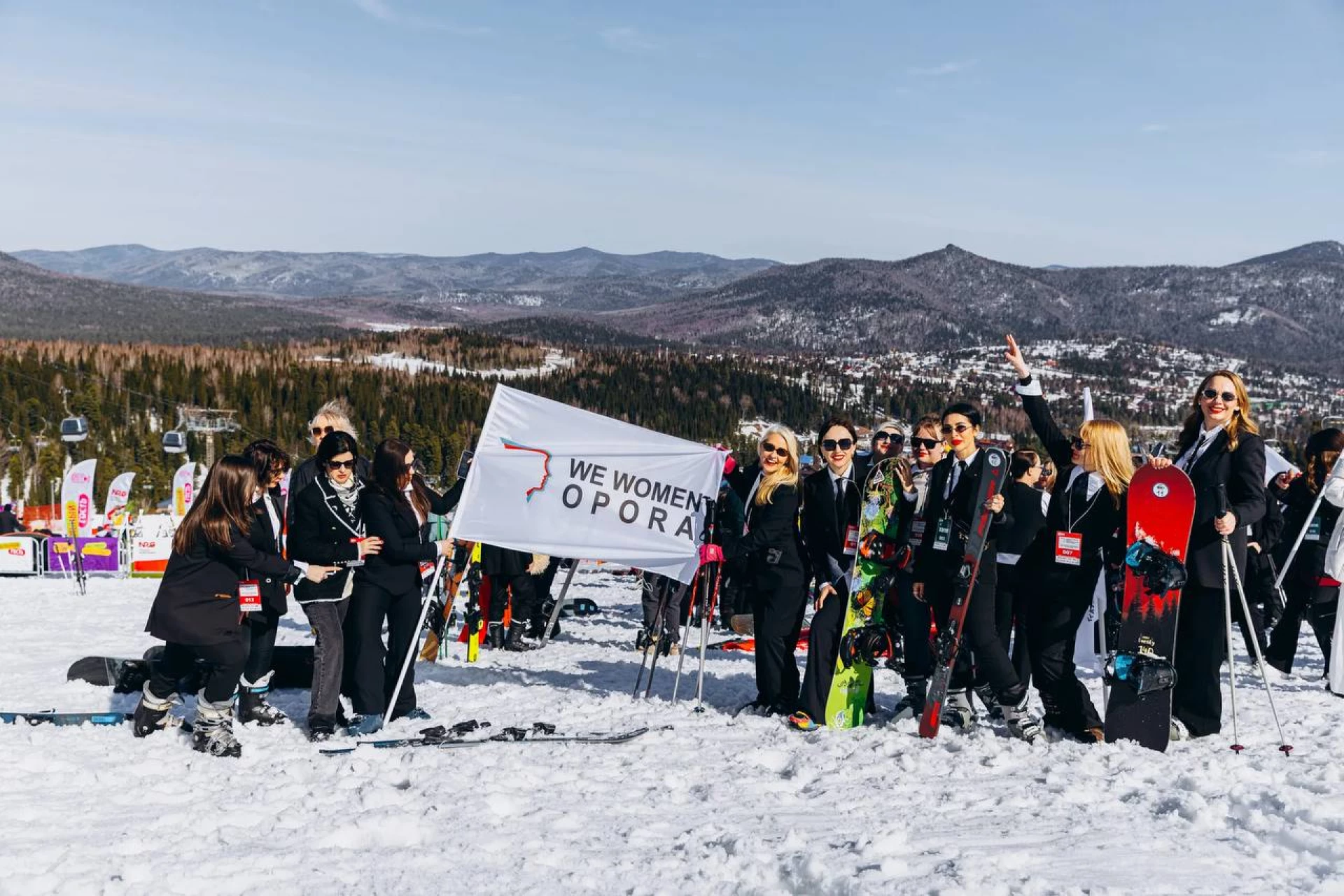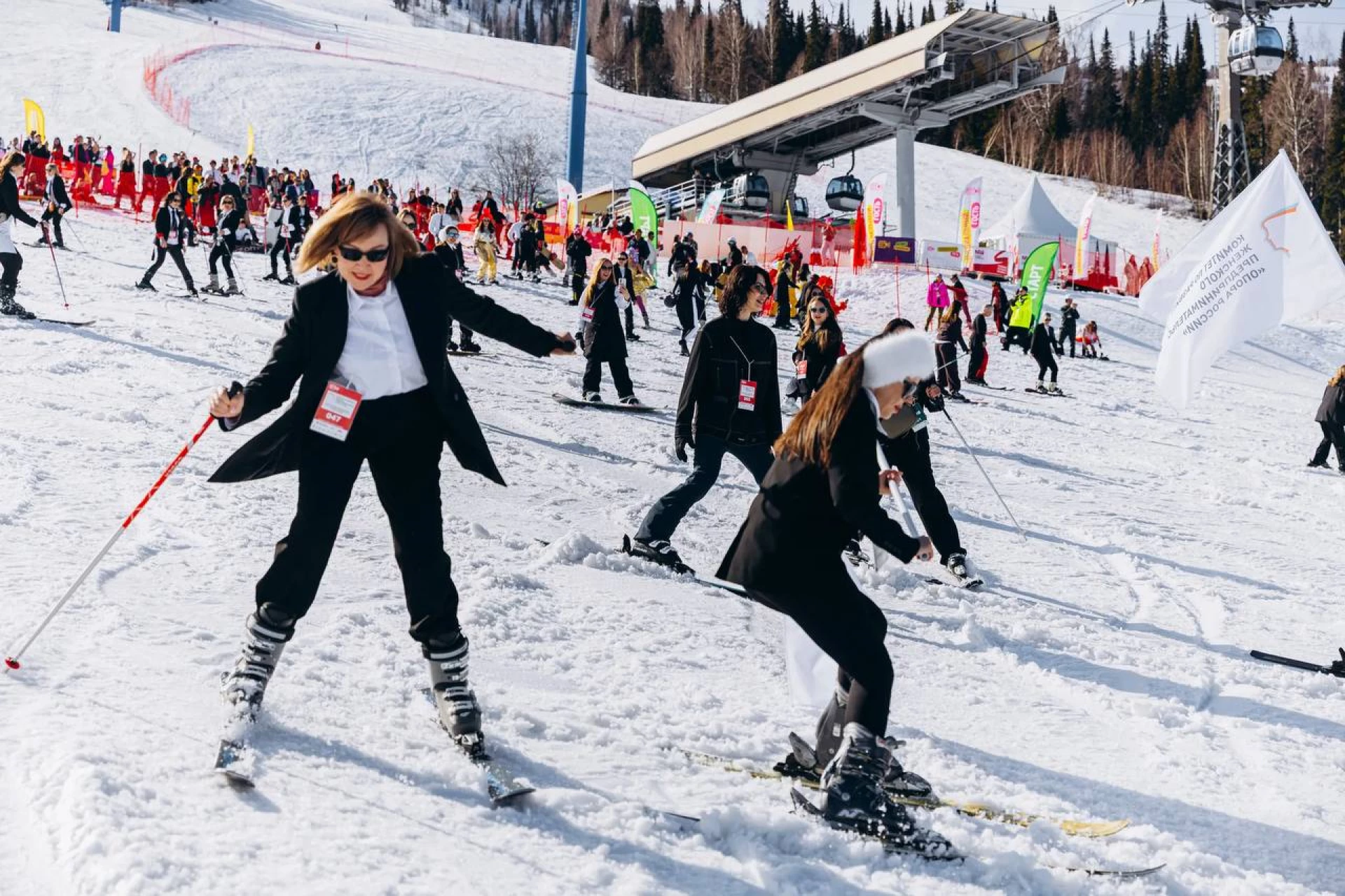 Женщины-предприниматели установили рекорд по спуску с горы в деловых костюмах в Шерегеше