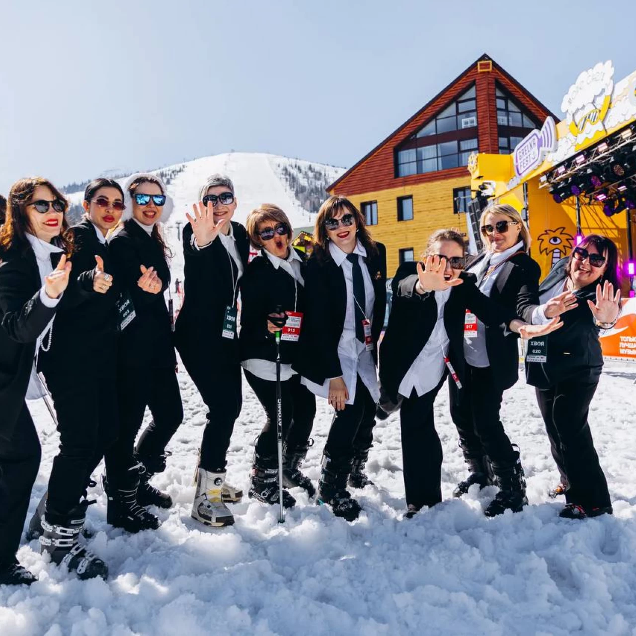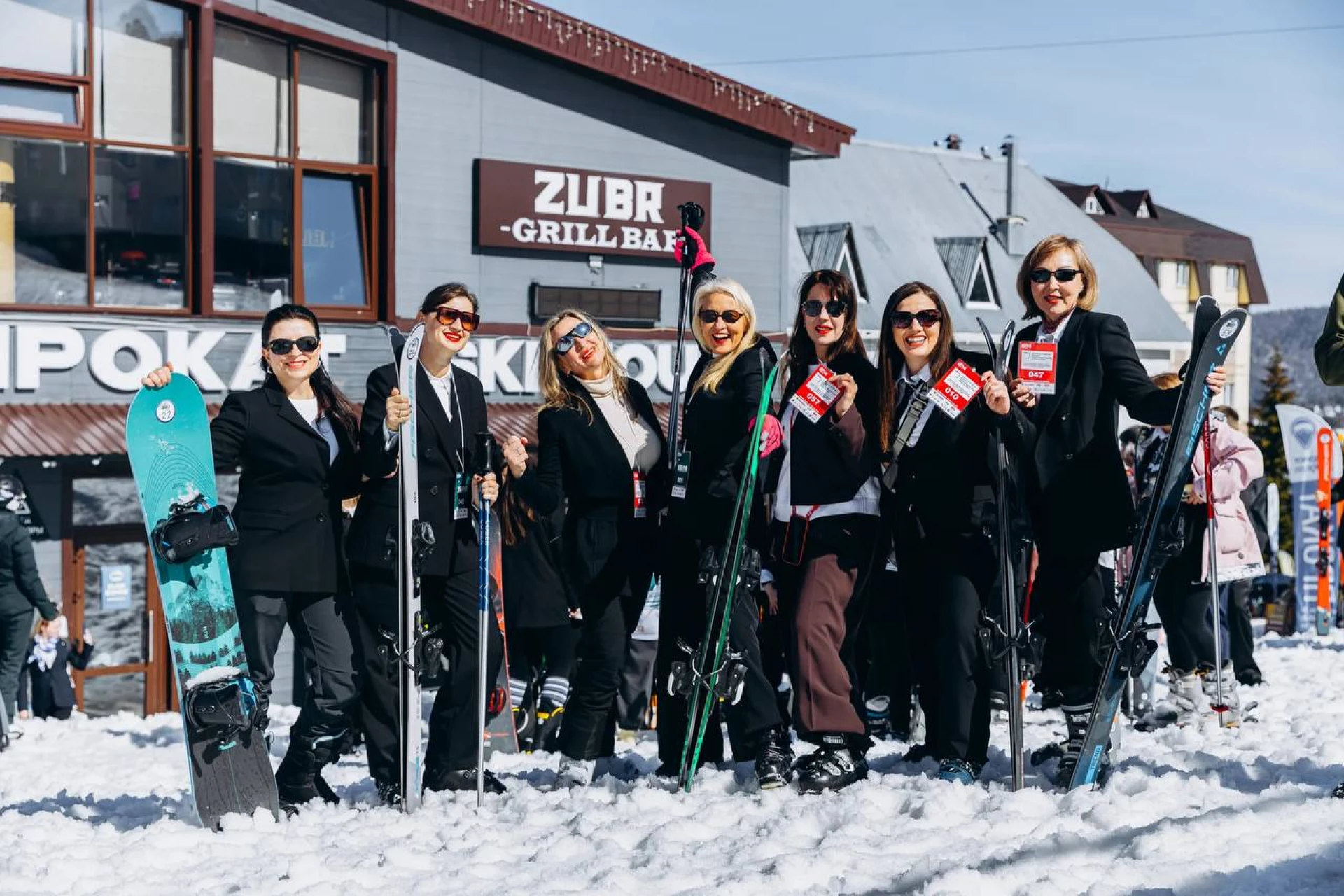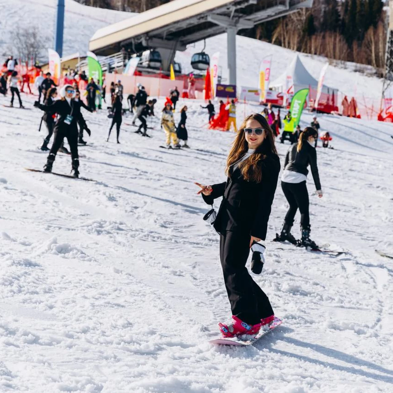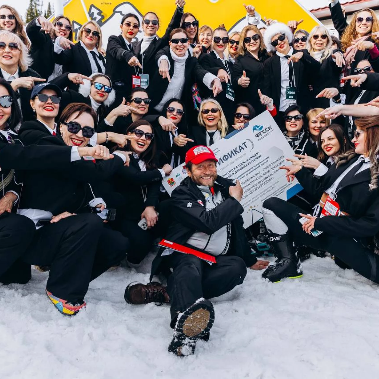 Женщины-предприниматели установили рекорд по спуску с горы в деловых костюмах в Шерегеше