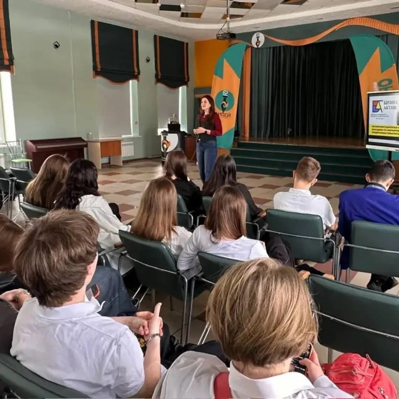 В свою очередь Юлия Токмашева акцентировала внимание на важности общения с действующими предпринимателями, основателями разноплановых бизнесов и знакомства с их компаниями изнутри и пригласила ребят в профориентационный проект «БизнесАктив».