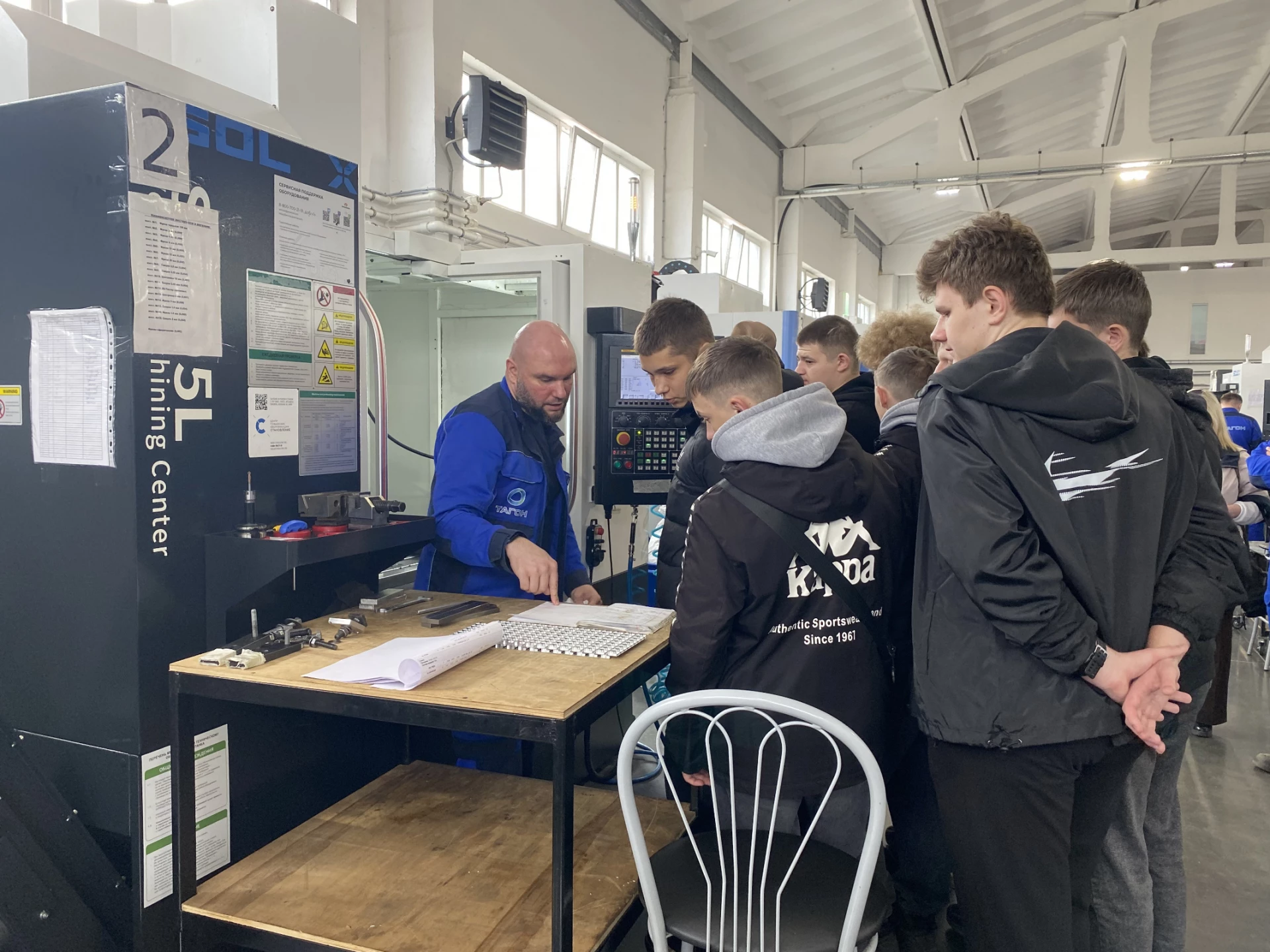 После этого студенты прошли по основным цехам, где понаблюдали за работой современного оборудования и процессом создания уникальных высокотехнологичных деталей для различных отраслей из металлических заготовок.