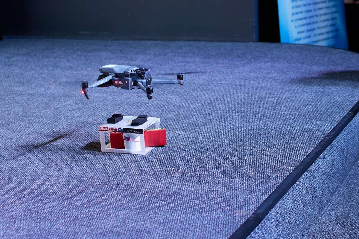 24 декабря на мероприятии Иркутской «ОПОРЫ РОССИИ» состоялась технологическая презентация — участникам представили новый цифровой маркетплейс, главной особенностью которого стала интеграция беспилотной доставки. Один из участников мероприятия сделал тестовый заказ и через несколько минут после подтверждения платежа в зале появился беспилотный летательный аппарат (БПЛА) с его покупкой.