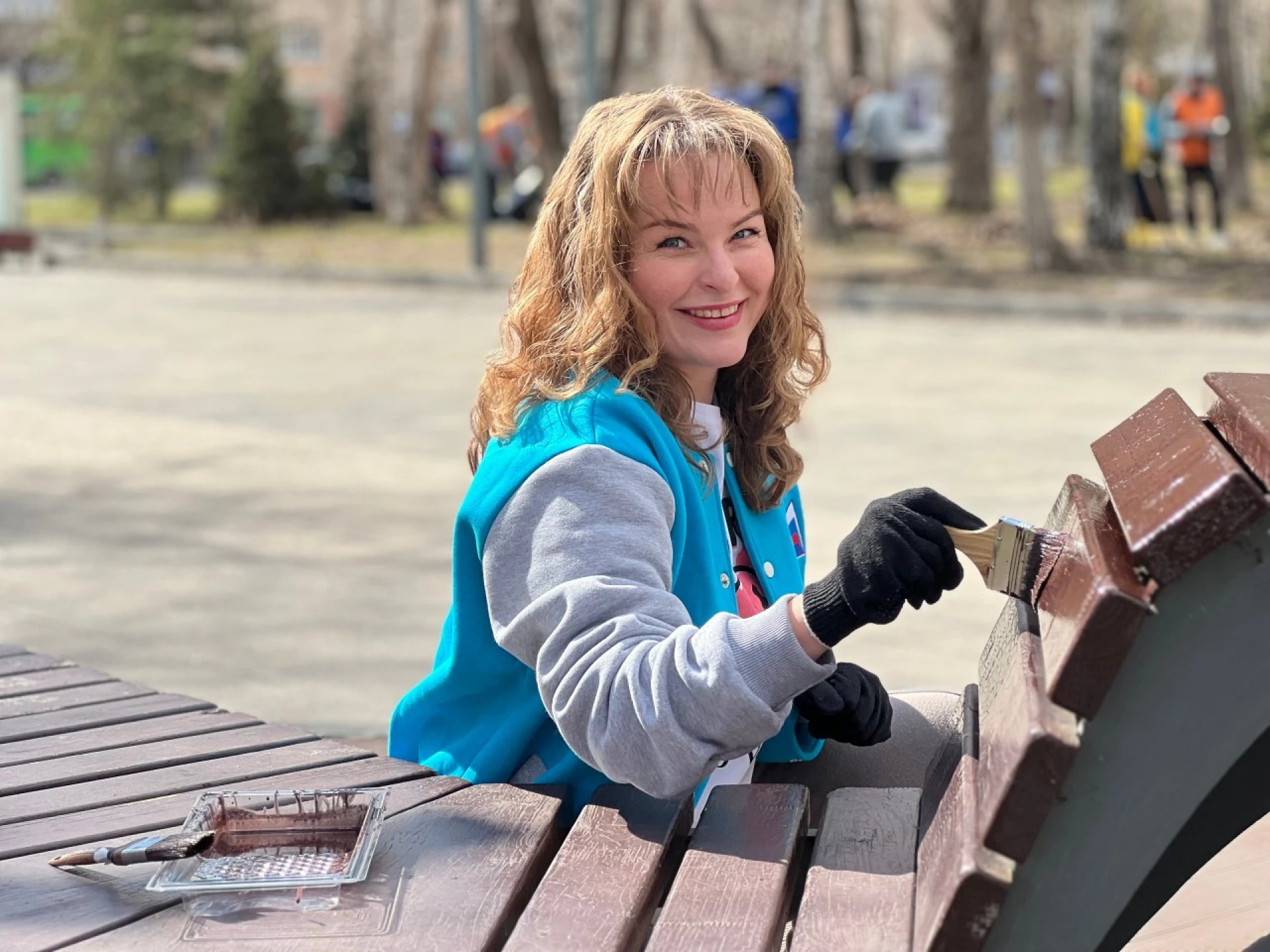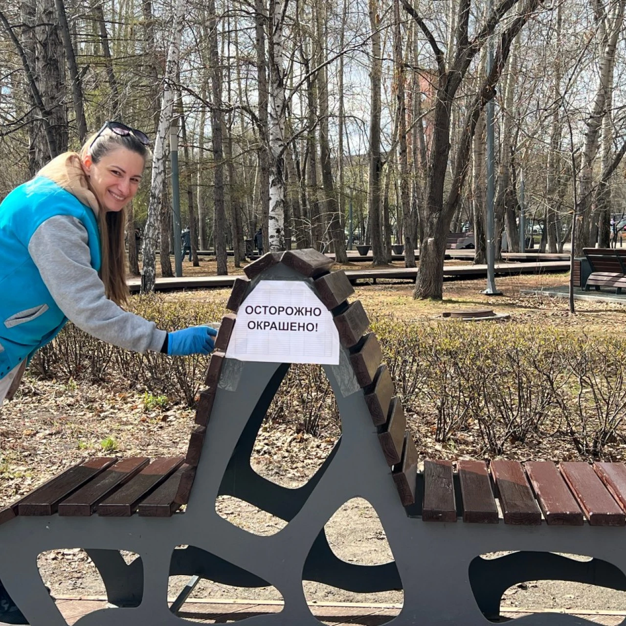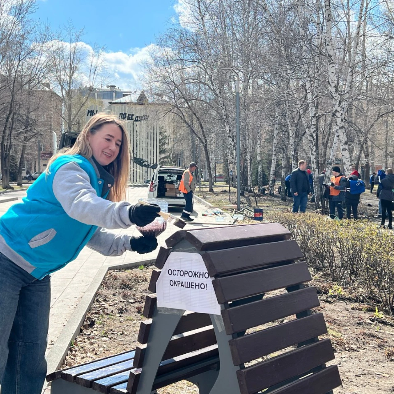 Совместными усилиями участники акции очистили территорию сквера от прошлогодней листвы и мусора. Особое внимание уделили элементам благоустройства — предприниматели обновили покрытие и покрасили порядка 26 парковых скамеек.