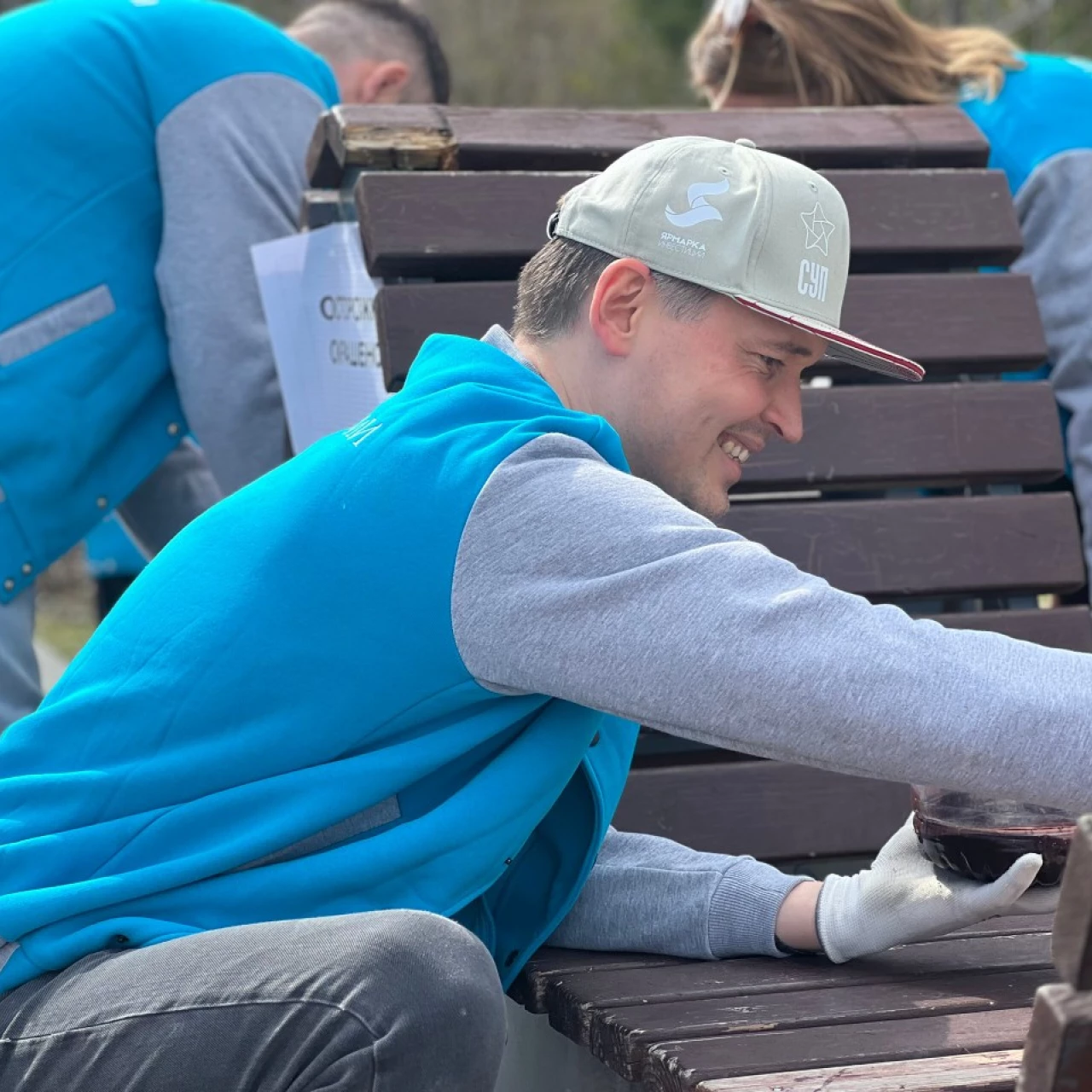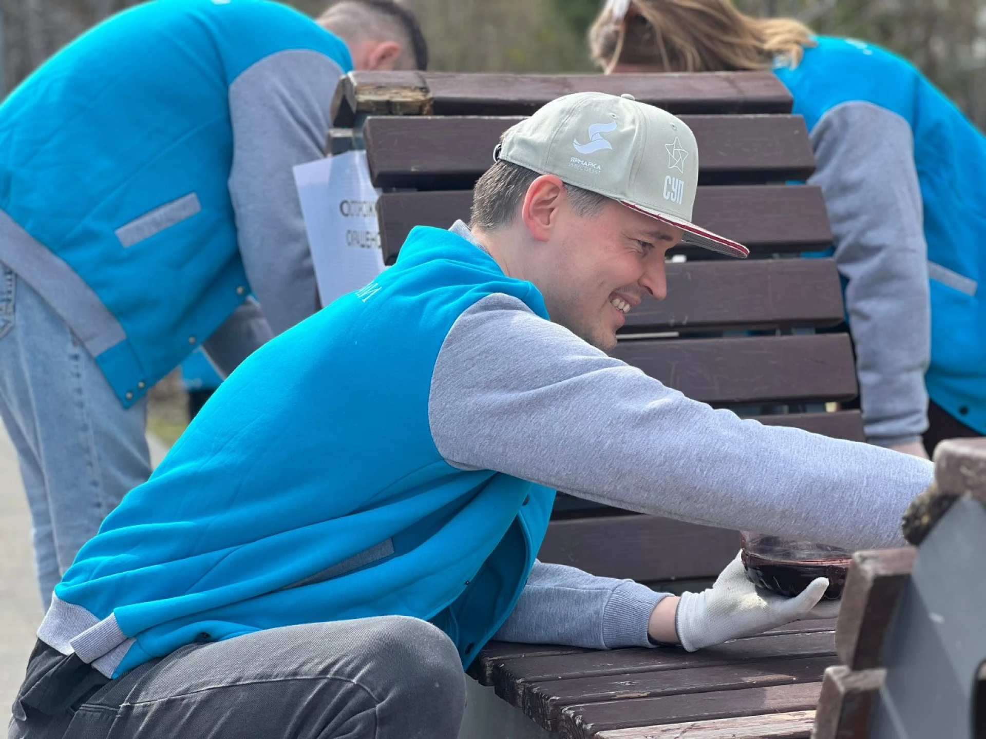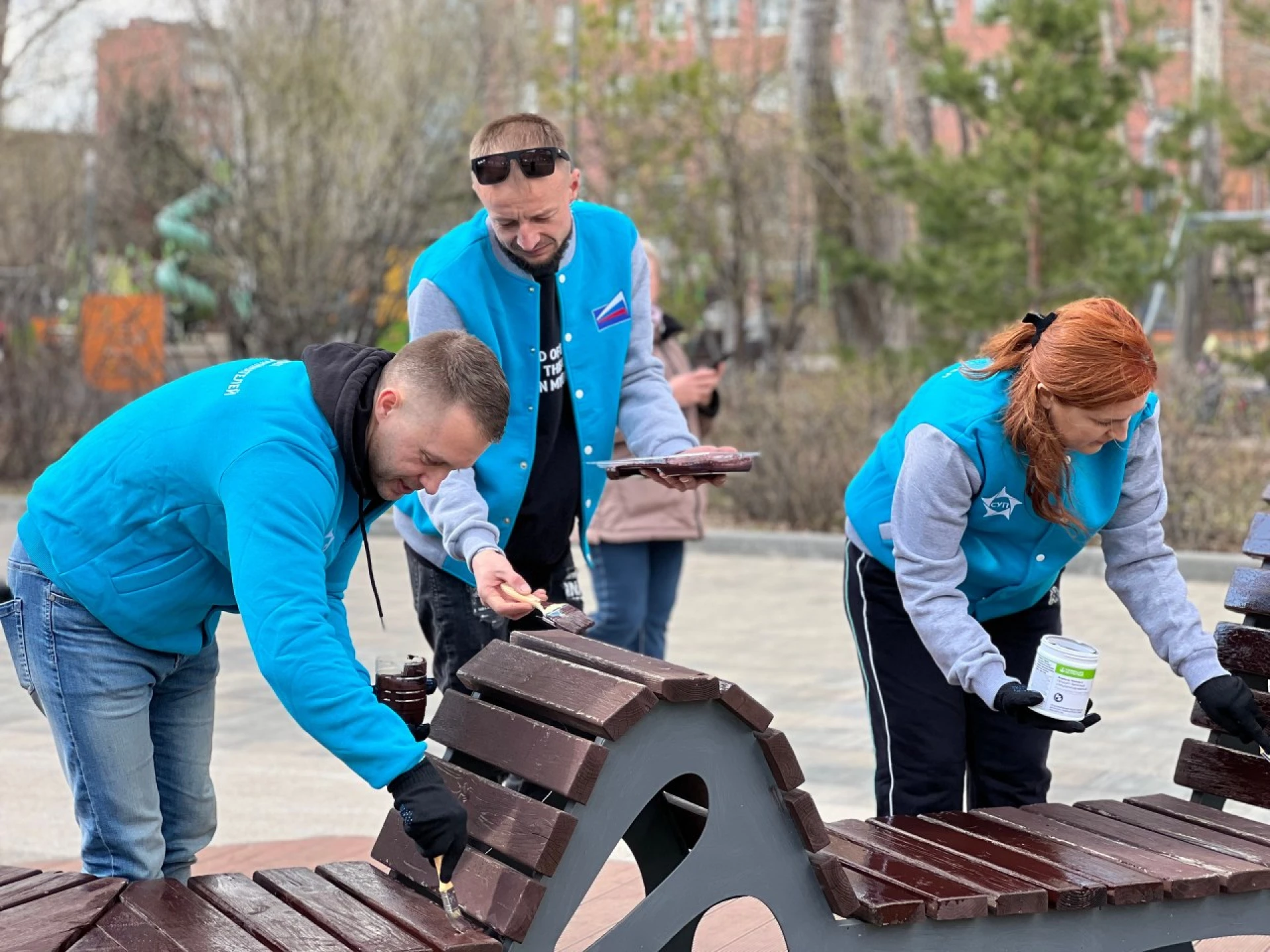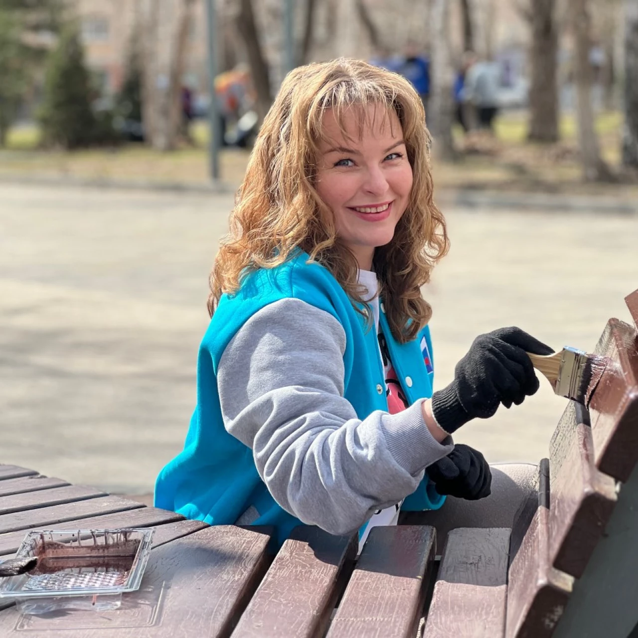 Совместными усилиями участники акции очистили территорию сквера от прошлогодней листвы и мусора. Особое внимание уделили элементам благоустройства — предприниматели обновили покрытие и покрасили порядка 26 парковых скамеек.