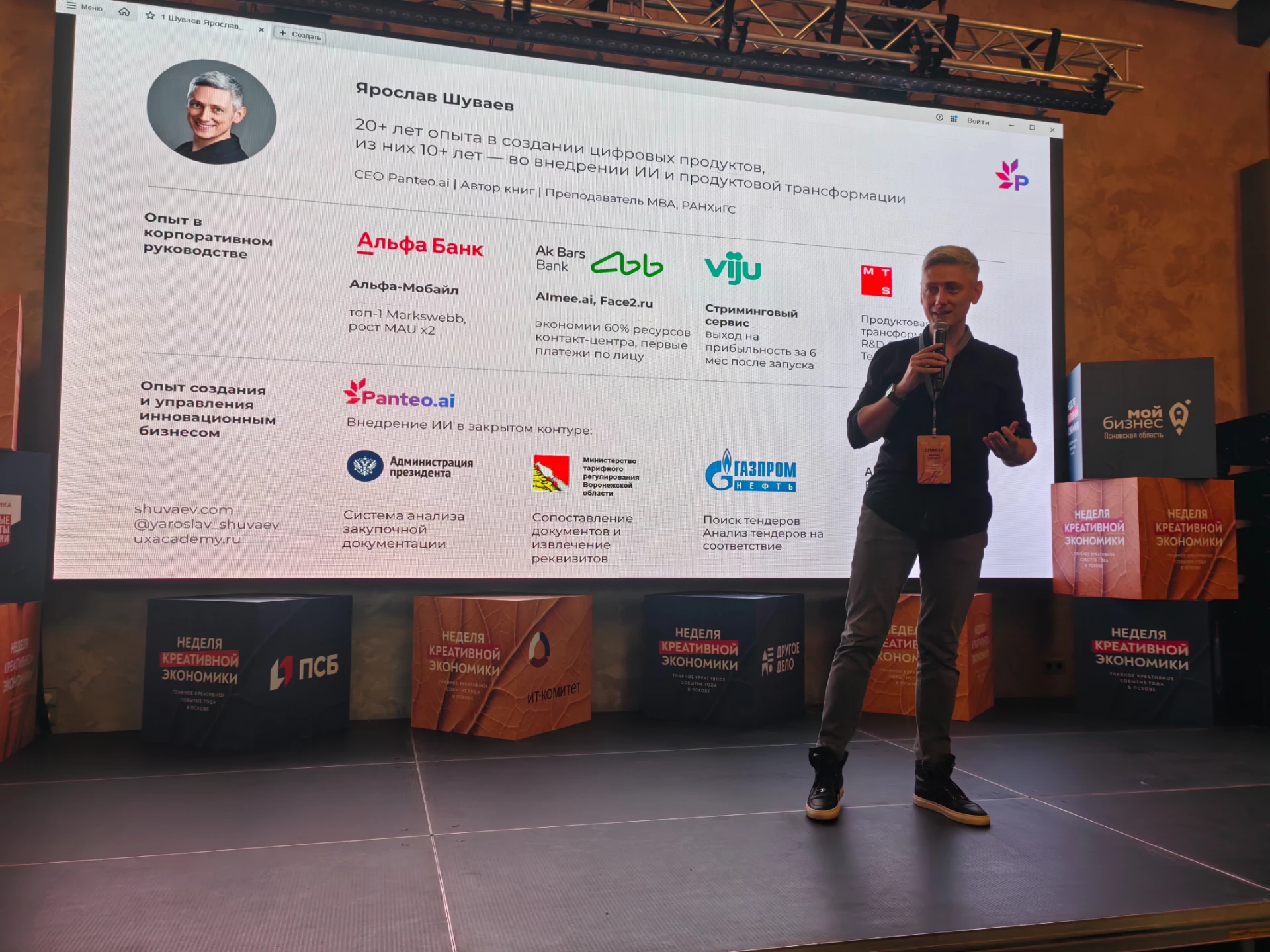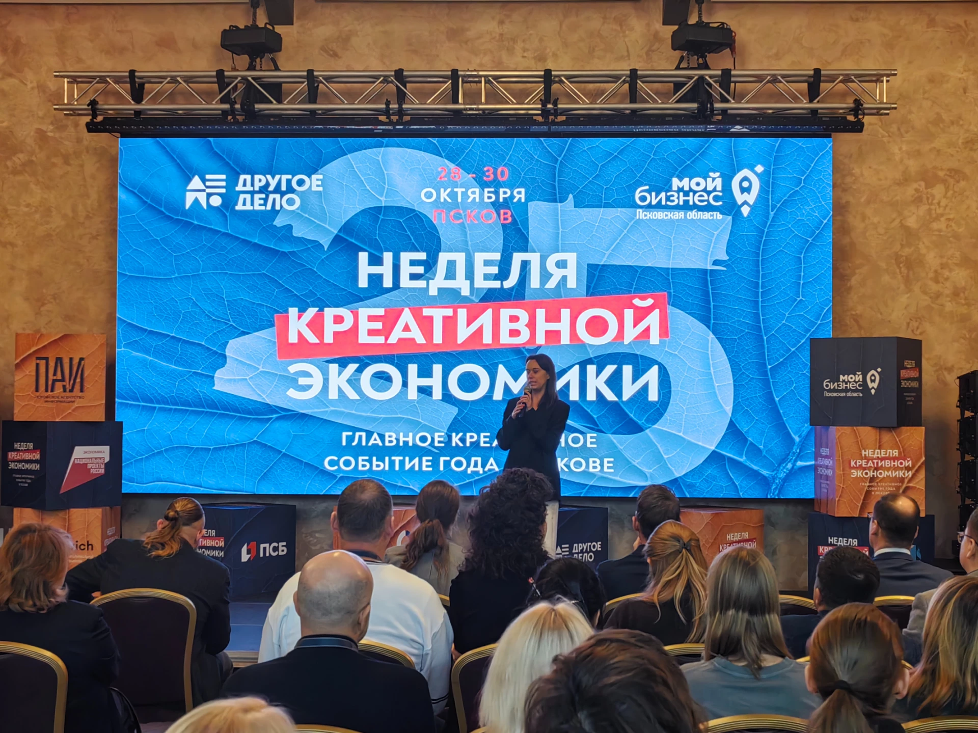 29 октября в рамках Недели креативной экономики состоялось воркшоу «Искусственный интеллект и технологии в бизнесе», ориентированное на вопросы практического применение ИИ в маркетинге, HR, продажах и креативных индустриях. Организатор мероприятия — центр «Мой бизнес» в Псковской области, профильный партнер — ИТ-комитет Псковской «ОПОРЫ РОССИИ». Воркшоу объединило почти 300 участников — предпринимателей, представителей ИТ-компаний, маркетологов, дизайнеров и специалистов по управлению.