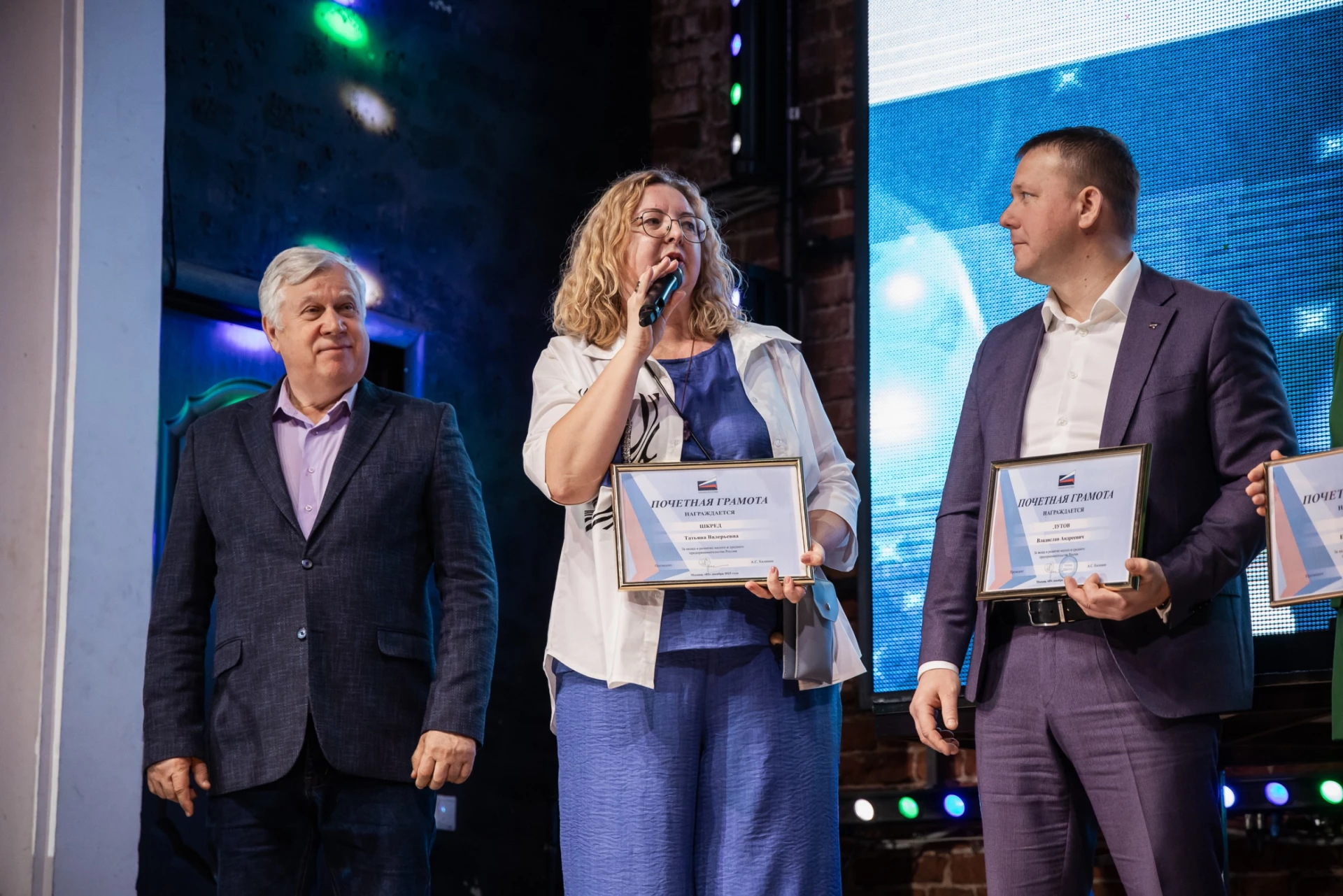 Благодарность за экспертную работу в отделении и активное участие в просветительских мероприятиях для предпринимателей в 2025 году вручили активным экспертам Воронежской «ОПОРЫ РОССИИ». Кроме того, Сергей Наумов вручил Благодарность заместителю Председателя Воронежской «ОПОРЫ РОССИИ» Марине Лютиковой, которая вместе с супругом ведет активную деятельность в рамках проекта «Срочная помощь — ОПОРА», направленного на поддержку бойцов СВО.