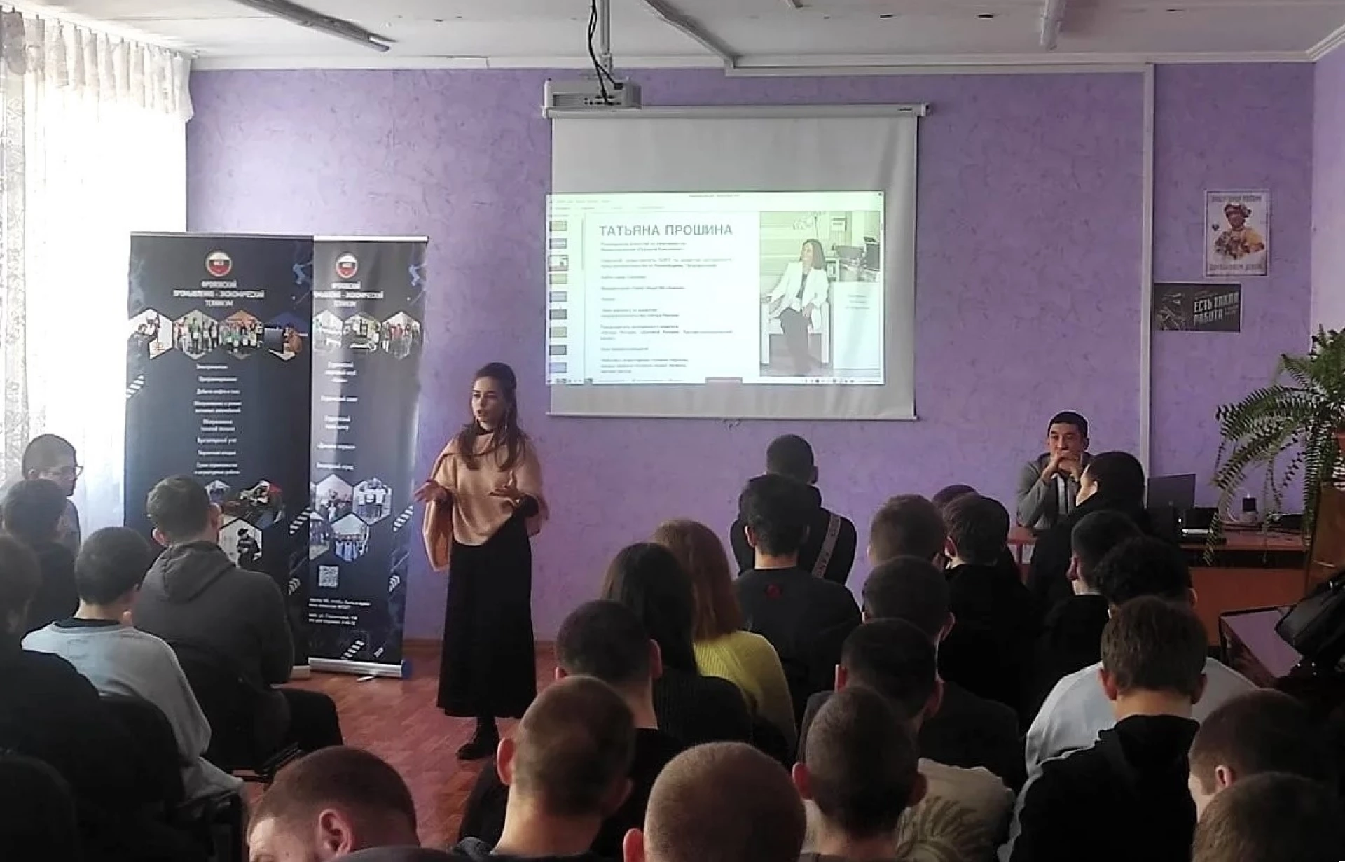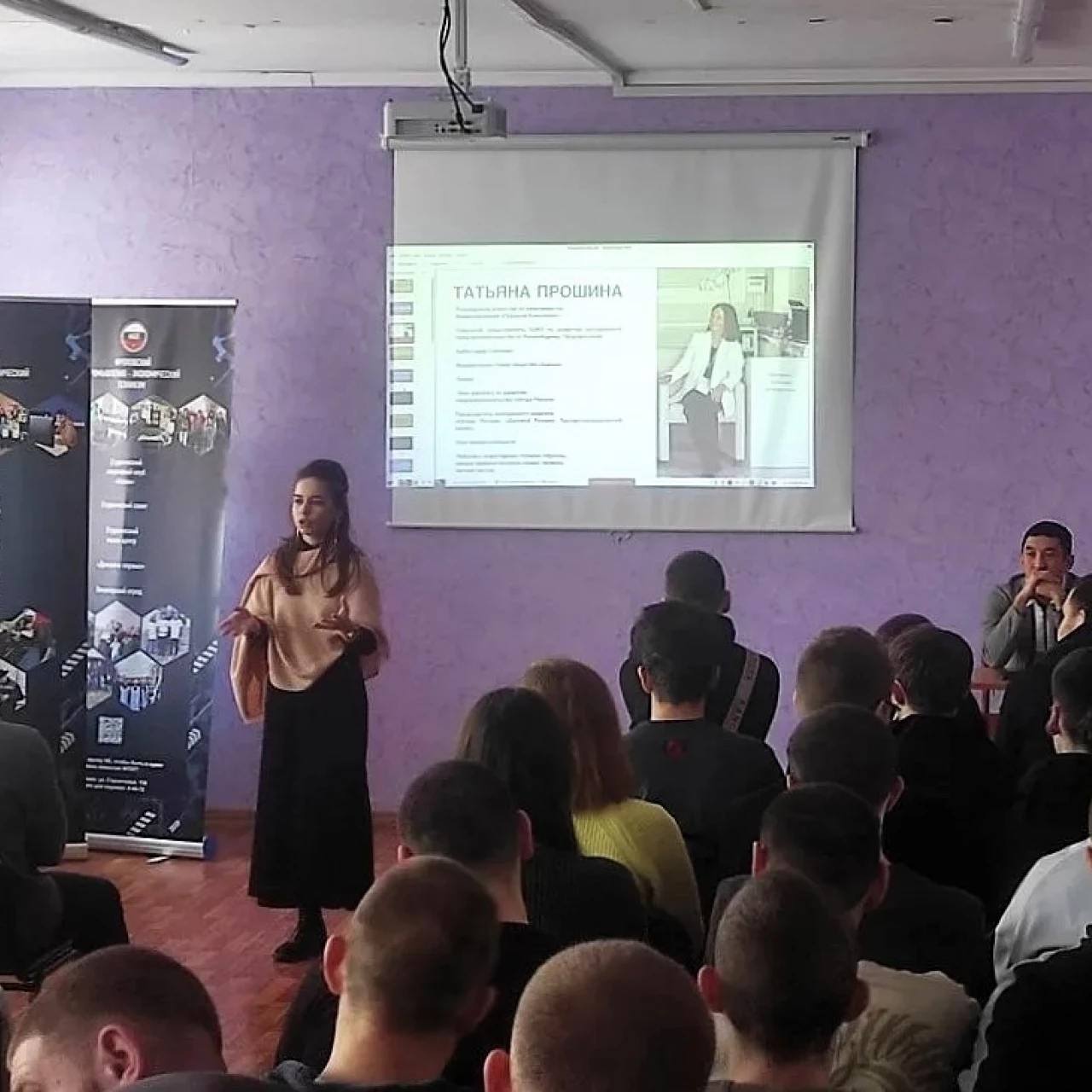 Первая часть визита была полностью посвящена молодежи. Мастер-класс для студентов провели Председатель Комитета по развитию молодежного предпринимательства Волгоградской «ОПОРЫ РОССИИ» Болат Мурзагалиев и заместитель Председателя Комитета, окружной представитель по ЮФО сообщества «Росмолодежь.Предпринимай» по развитию молодежного предпринимательства Татьяна Прошина.